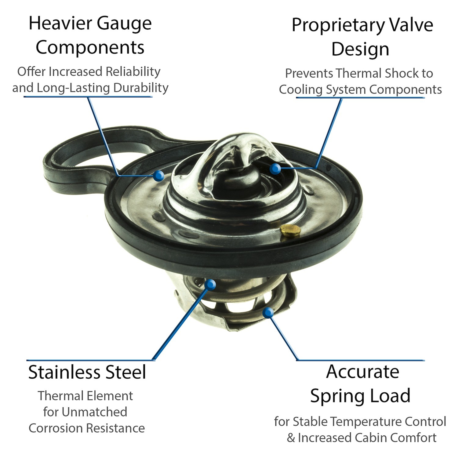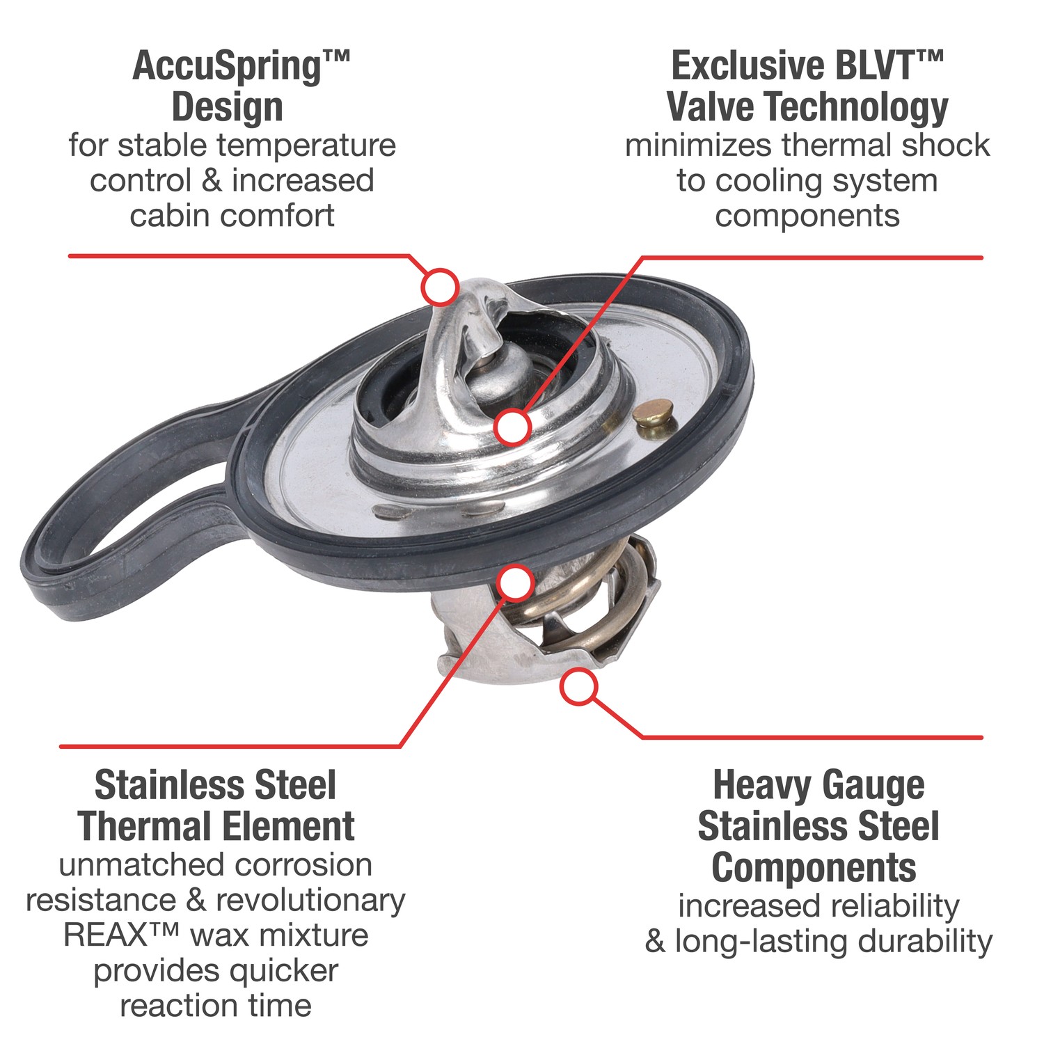 - UltraStat™ Thermostats are the toughest thermostats on the market. All heavy gauge stainless steel construction provides long-life durability, as well as complete corrosion resitance. Exclusive BLVT™ Valve technology minimizes thermal shock to cooling system components.