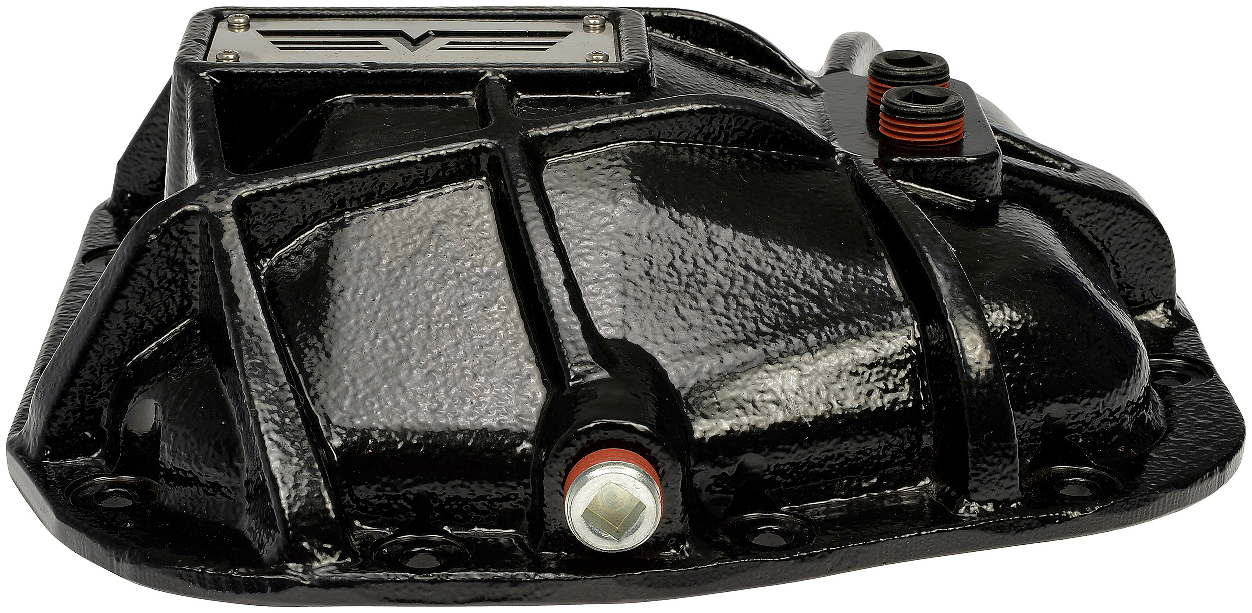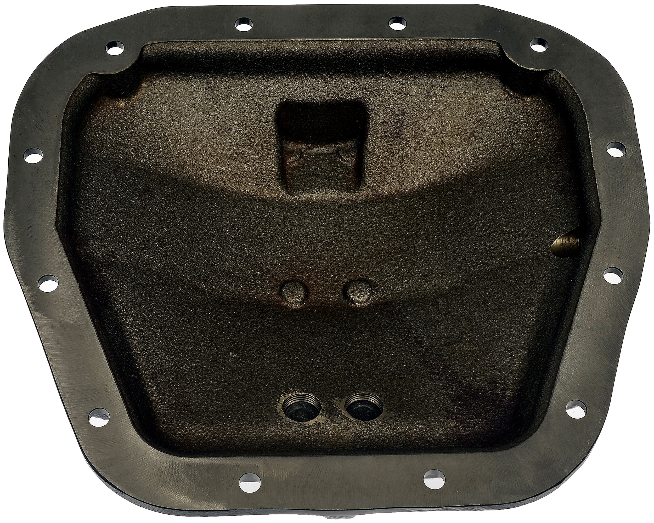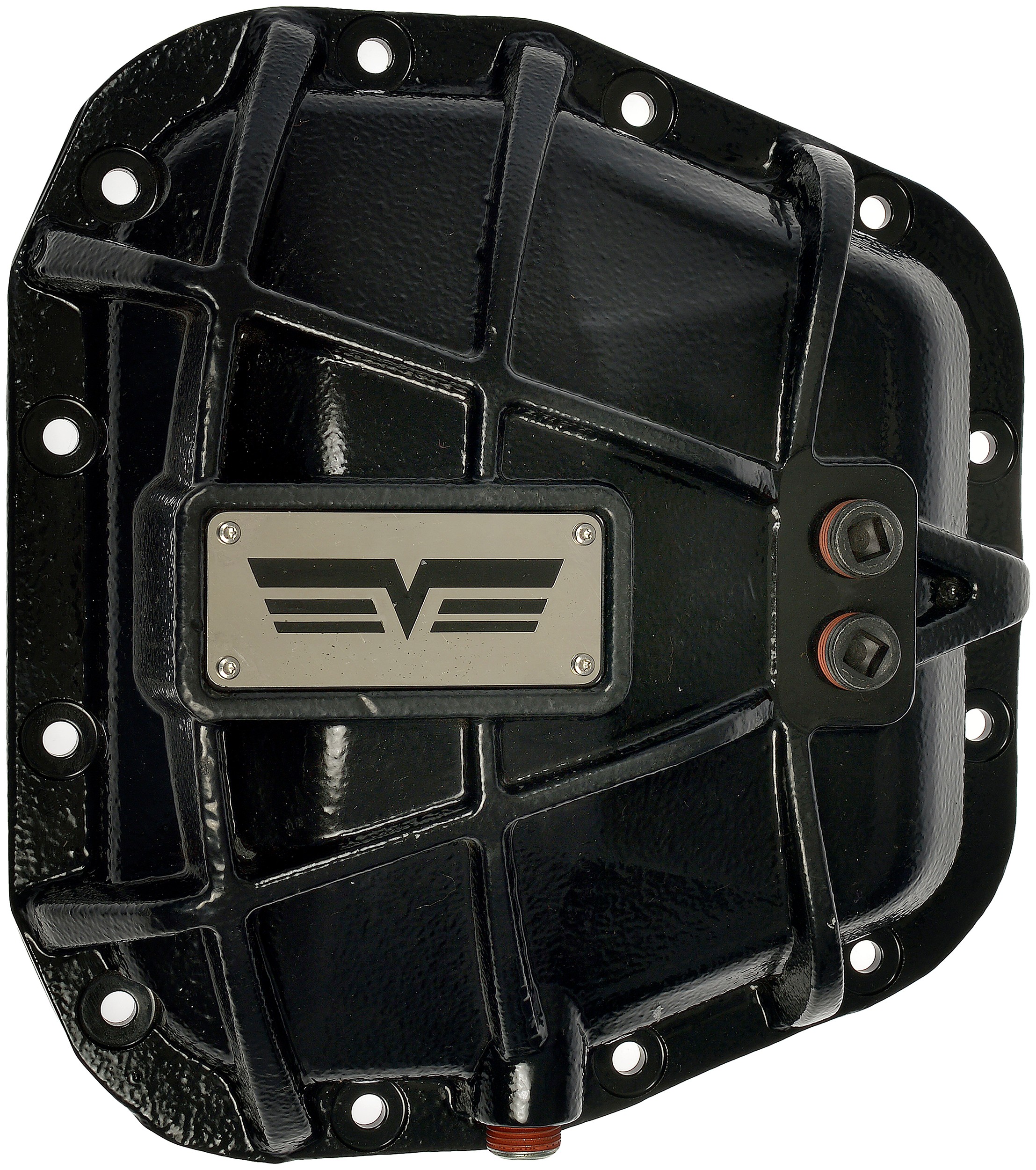 - If you venture off the beaten path, plow snow, or subject your truck or SUV to extreme conditions, this rugged rear differential cover will boost the protection and personality of your vehicle's drivetrain. Instead of the vulnerable thin stamped steel original equipment cover, this diff cover is precision-engineered from thick ductile iron and boasts an attractive, corrosion-resistant wrinkle coating. Rocks, trail hazards and damaging debris can easily ding an ordinary differential cover, leading to oil leaks and cracks. Plow trucks undergo stress due to the weight of salters and plows, and the no-brakes impacts of hidden potholes, coupled with the corrosive nature of all the salt season after season. This cover also features two filler plugs, which can help ease the difficulties of filling through the factory plug located on the axle housing. The cover is also fitted with a drain plug to make fluid exchanges quick, easy, and remove the need for replacing the differential cover gasket. This extra-rigid replacement will help keep critical components safe while adding a serious cool factor, especially on lifted vehicles. Want to customize your diff even more? We've made the stainless steel Dorman logo plate removable so you can replace it with the plate and logo of your choice. The cover comes complete with all necessary bolts and plugs for a complete upgrade.