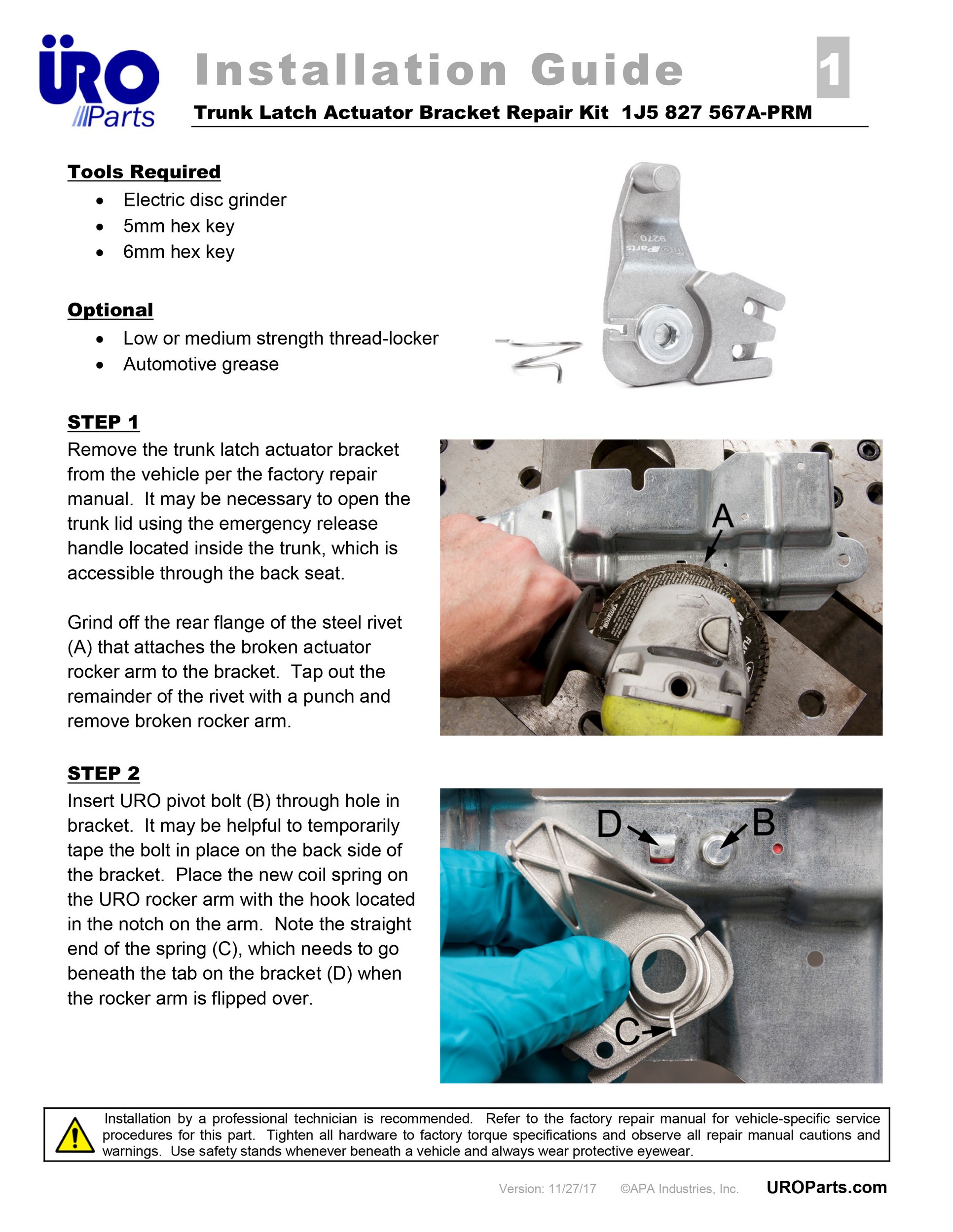 - Replacement with URO lever restores proper trunk latch operation
