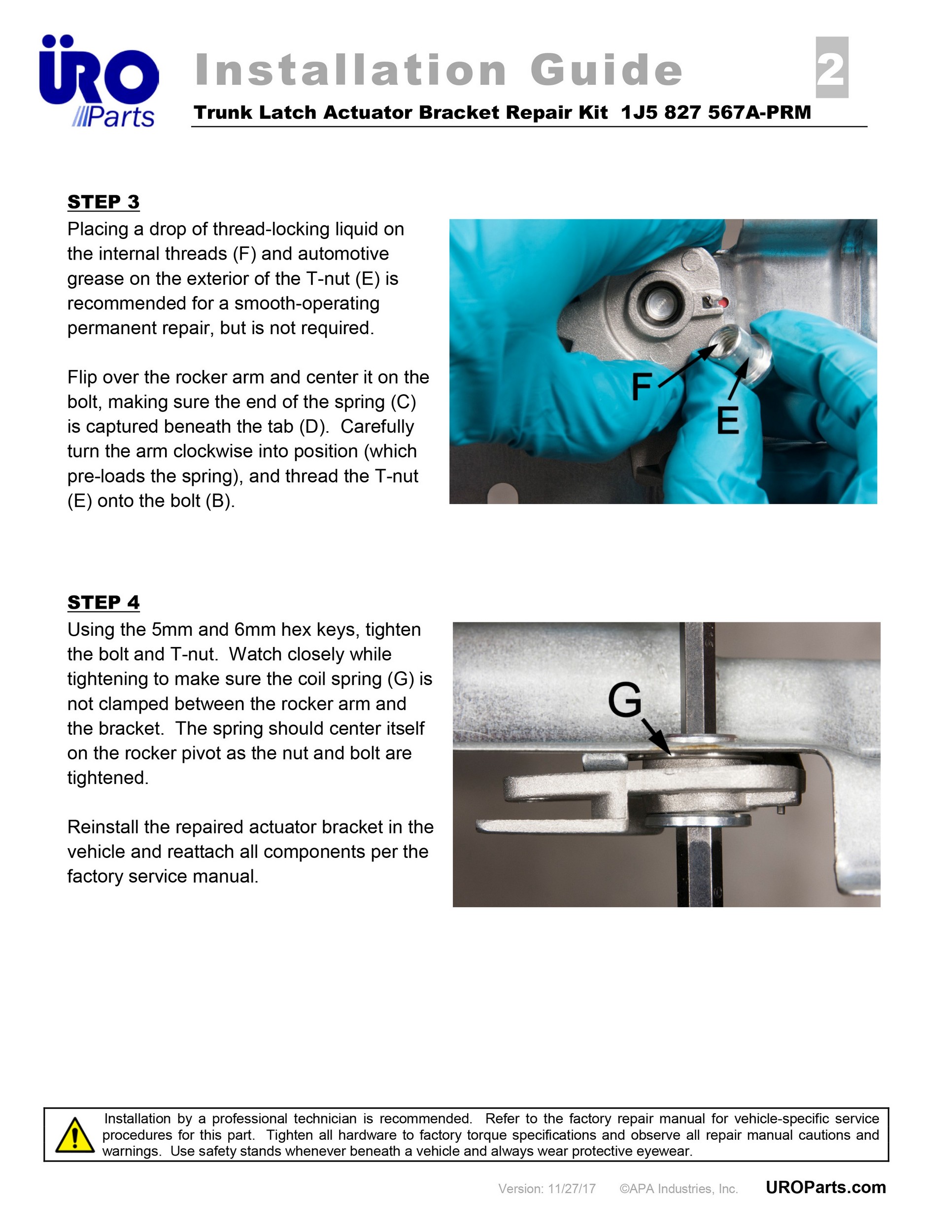 - OE lock actuator lever is fragile plastic and often breaks