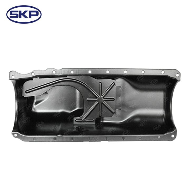 - SKP's Engine Oil Pan is a replacement part for the oil pan on your vehicle's engine. It acts as a reservoir for the engine oil, protecting it from contaminants and ensuring proper lubrication throughout the engine. A worn or damaged oil pan can lead to oil leaks and potential engine damage. This SKP oil pan is manufactured to meet OE standards for quality and durability.