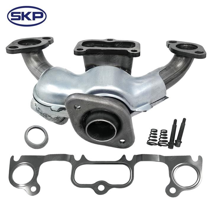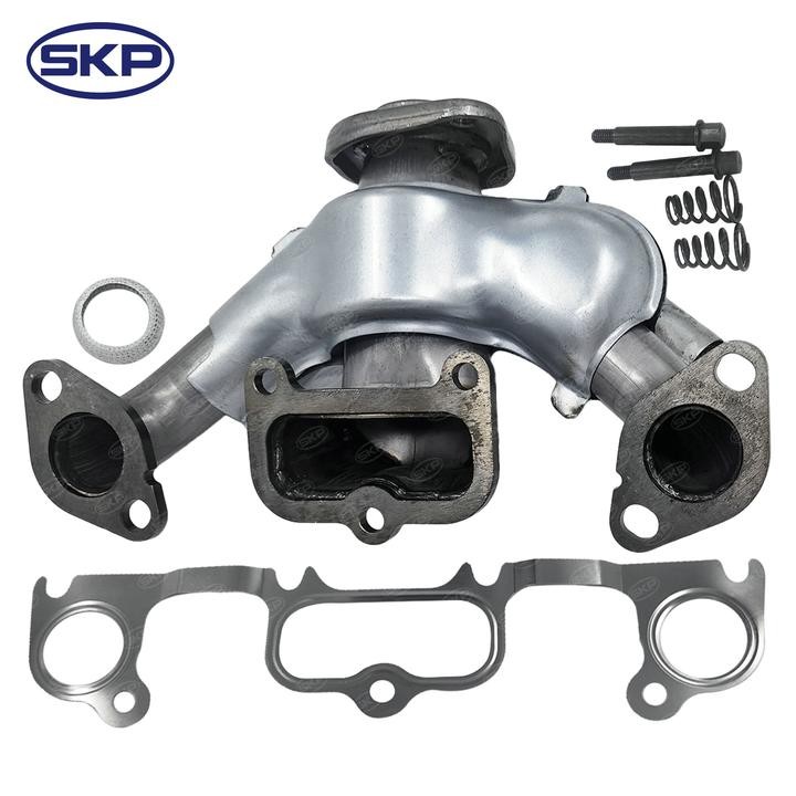 - SKP exhaust manifolds are made with high-quality cast iron for long-lasting performance and are designed to meet or exceed Original Equipment (OE) specifications. They are available for a wide variety of vehicles and are an ideal choice for replacing a cracked, warped, or leaking manifold. By replacing your exhaust manifold with an SKP part, you can restore your engine's performance and improve fuel efficiency.