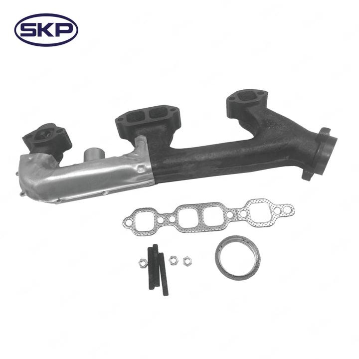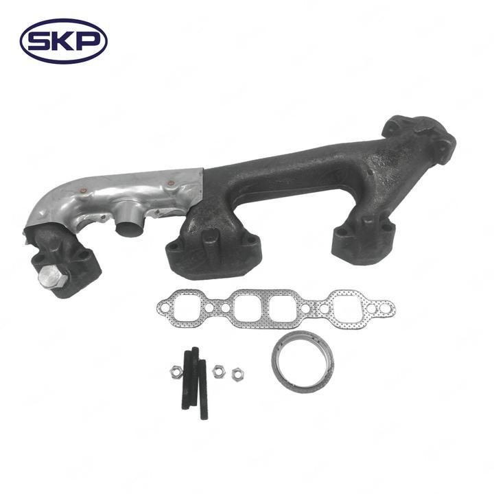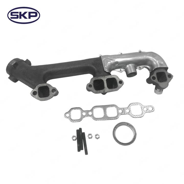 - SKP exhaust manifolds are made with high-quality cast iron for long-lasting performance and are designed to meet or exceed Original Equipment (OE) specifications. They are available for a wide variety of vehicles and are an ideal choice for replacing a cracked, warped, or leaking manifold. By replacing your exhaust manifold with an SKP part, you can restore your engine's performance and improve fuel efficiency.