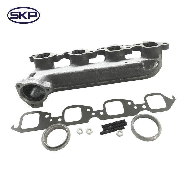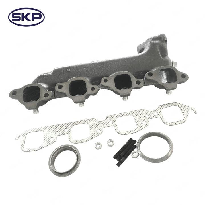 - SKP exhaust manifolds are made with high-quality cast iron for long-lasting performance and are designed to meet or exceed Original Equipment (OE) specifications. They are available for a wide variety of vehicles and are an ideal choice for replacing a cracked, warped, or leaking manifold. By replacing your exhaust manifold with an SKP part, you can restore your engine's performance and improve fuel efficiency.