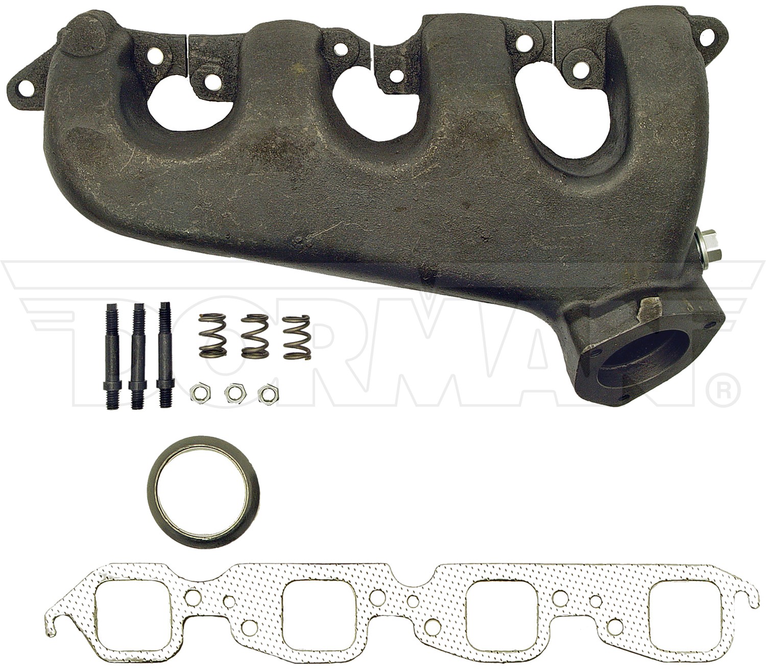 - Complete kit - includes new manifold, manifold gasket, flange gasket, 3 studs, 3 nuts and 3 springs