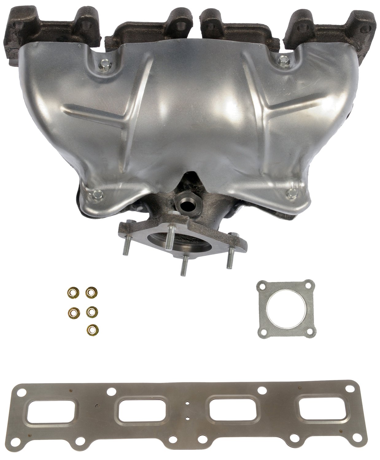 - This exhaust manifold was precision-engineered and durably manufactured to match the fit and function of the original manifold on specified vehicles. It includes all necessary gaskets and downpipe hardware for a complete repair.