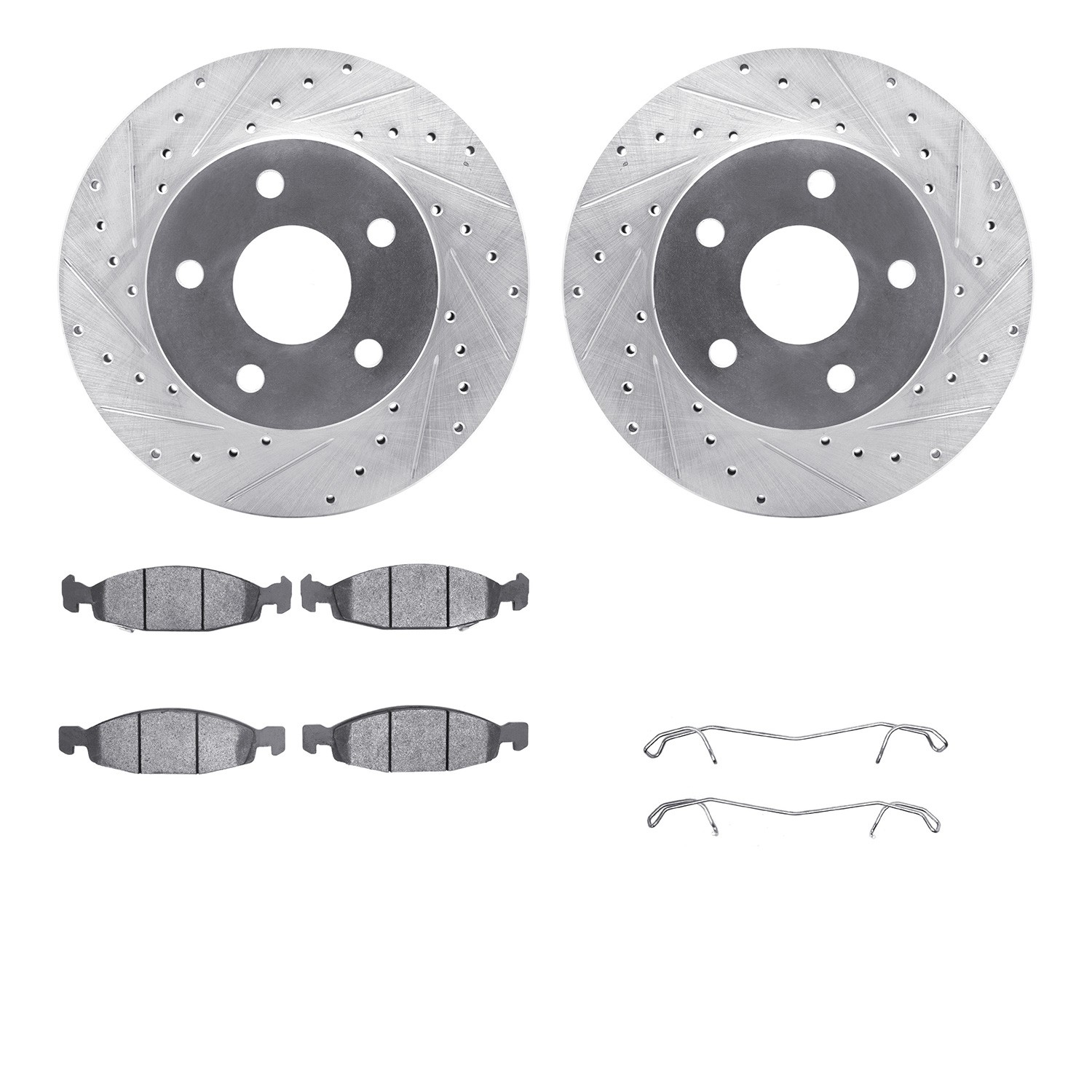 - DFC Brake Rotor - Drilled & Slotted - Silver- HD Brake Pad - Hardware
