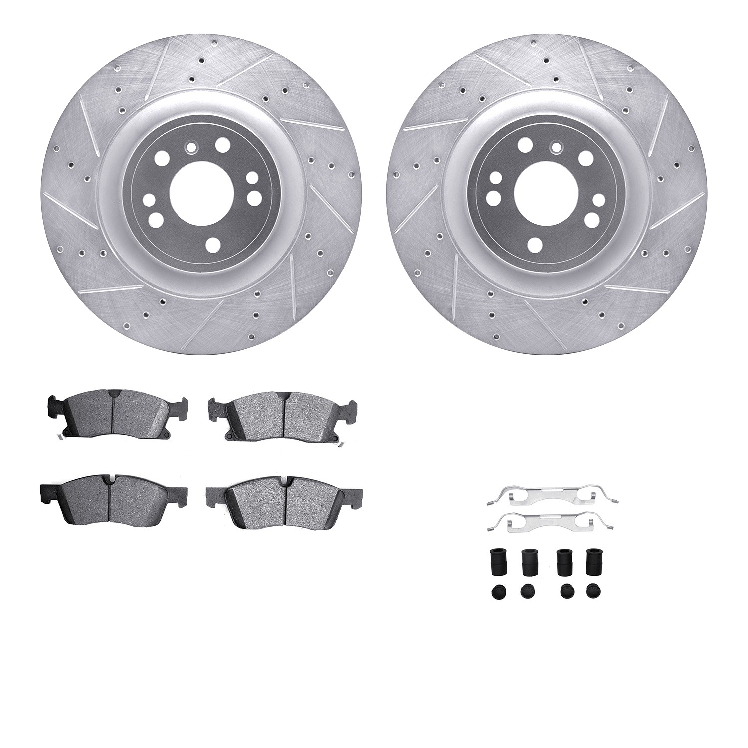 - DFC Brake Rotor - Drilled & Slotted - Silver- HD Brake Pad - Hardware