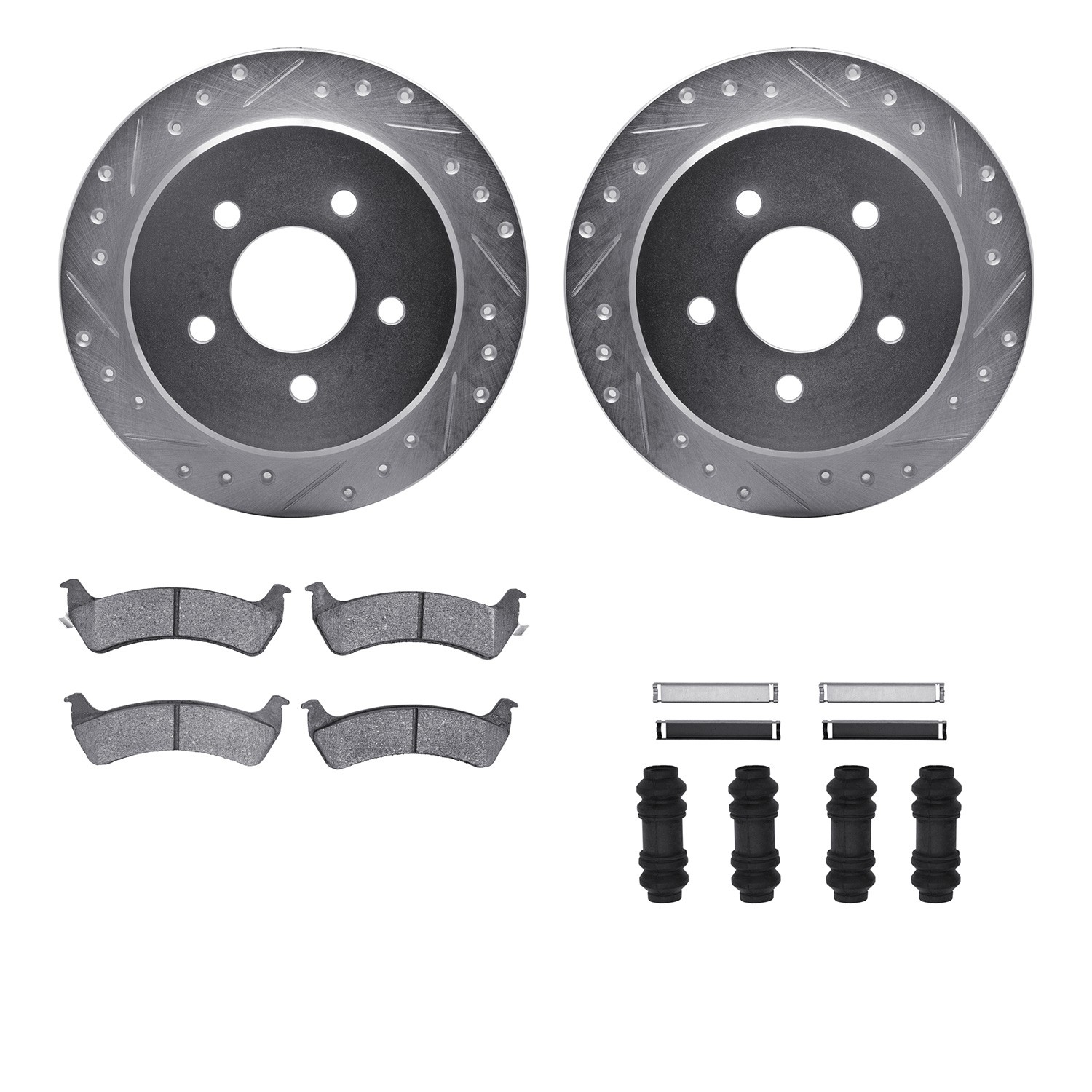 - DFC Brake Rotor - Drilled & Slotted - Silver- HD Brake Pad - Hardware