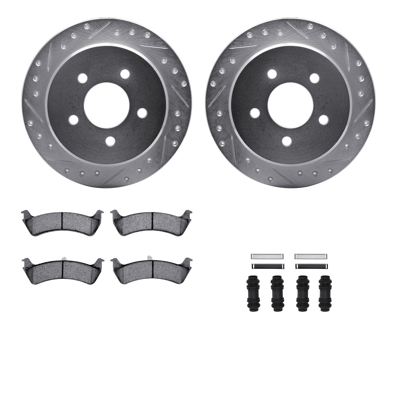 - DFC Brake Rotor - Drilled & Slotted - Silver- HD Brake Pad - Hardware