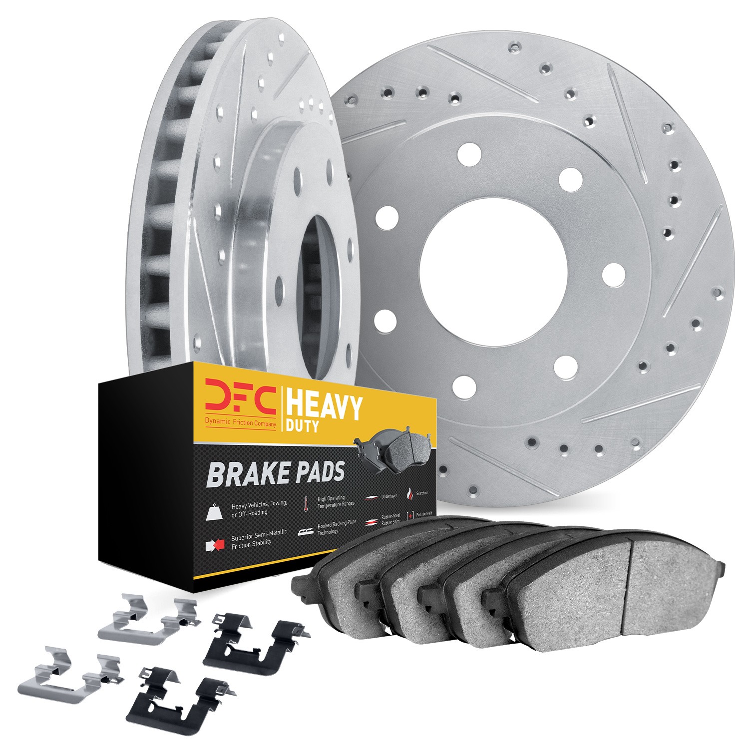 - DFC Brake Rotor - Drilled & Slotted - Silver- HD Brake Pad - Hardware