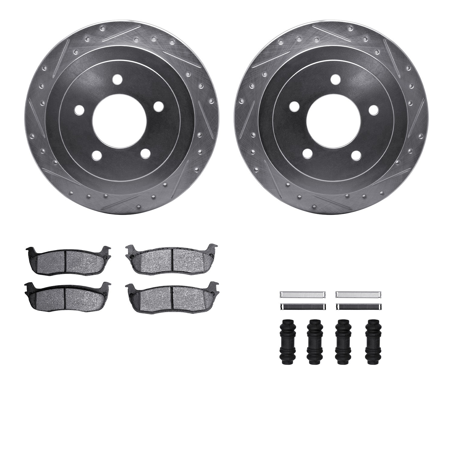 - DFC Brake Rotor - Drilled & Slotted - Silver- HD Brake Pad - Hardware