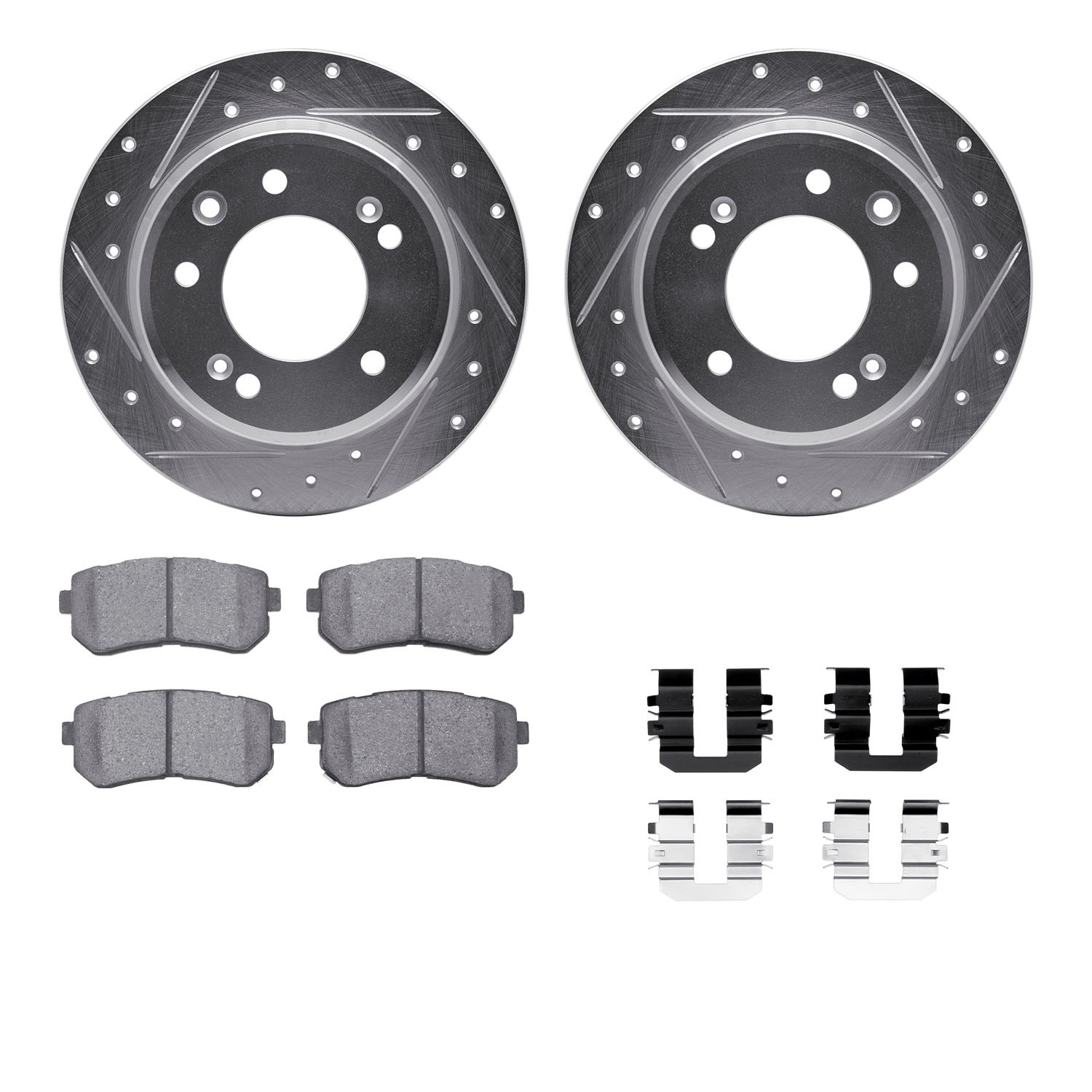 - DFC Brake Rotor - Dimpled & Slotted - Silver w/3000 Ceramic Brake Pads & HW Kit