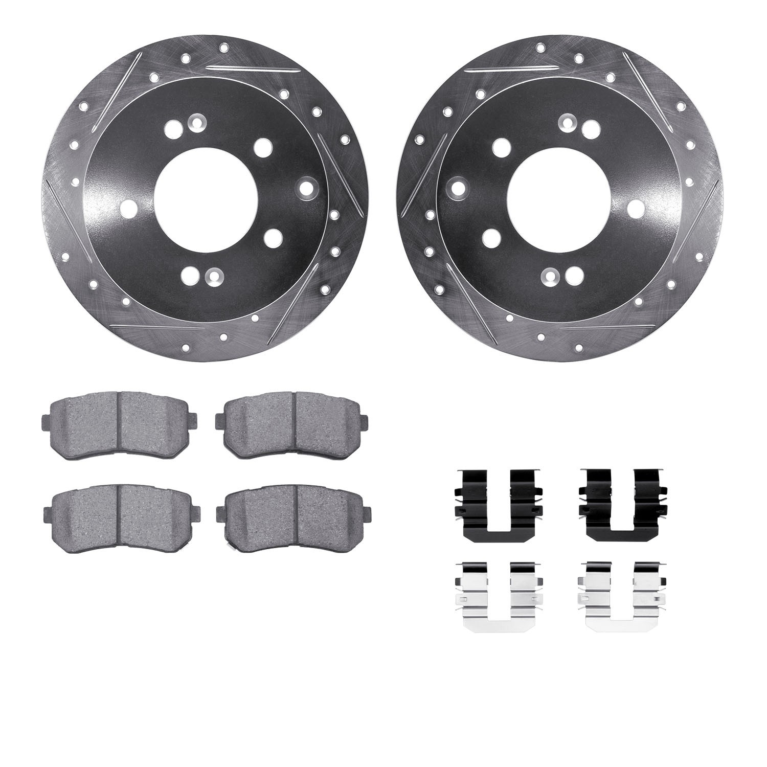- DFC Brake Rotor - Dimpled & Slotted - Silver w/3000 Ceramic Brake Pads & HW Kit