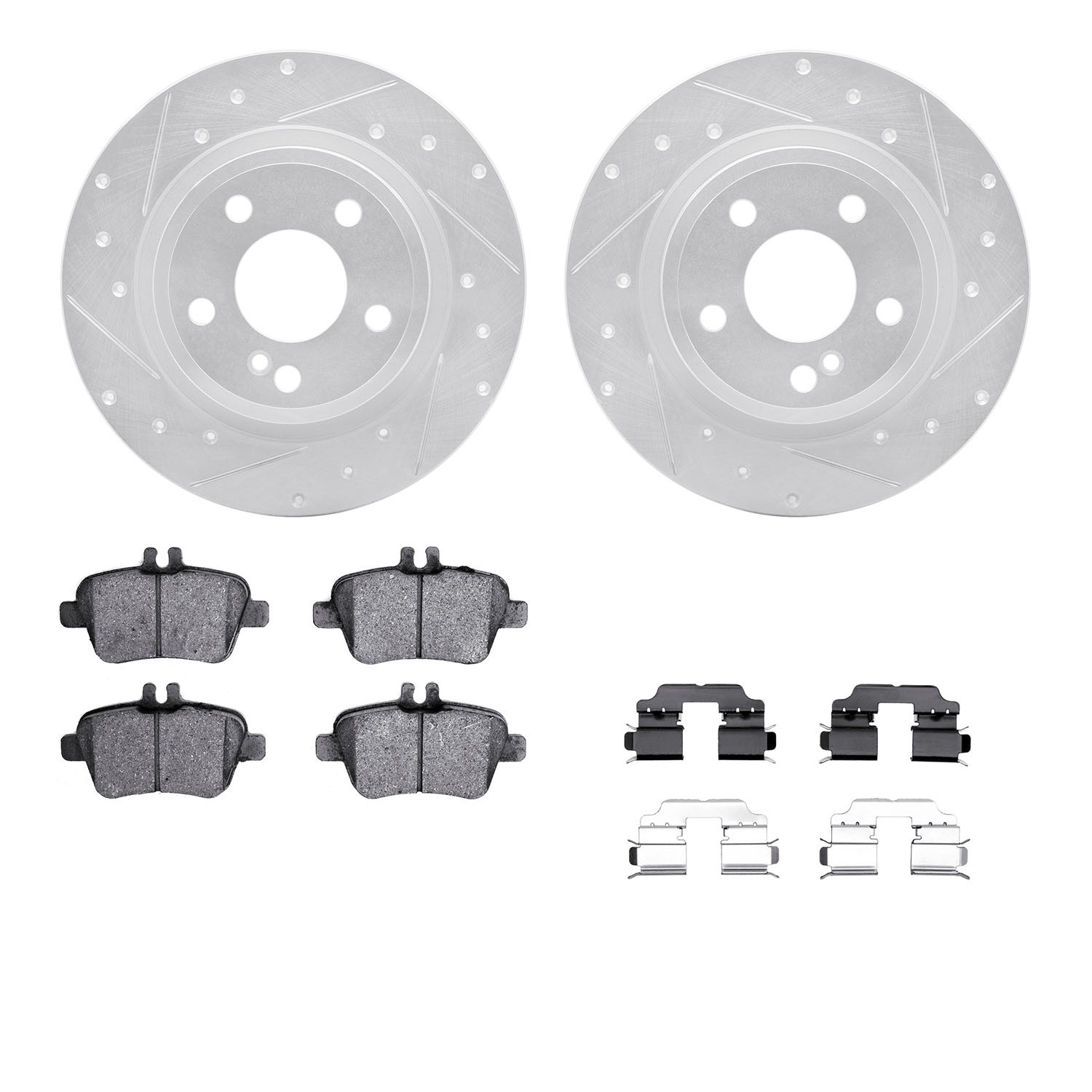- DFC Brake Rotor - Dimpled & Slotted - Silver w/3000 Ceramic Brake Pads & HW Kit