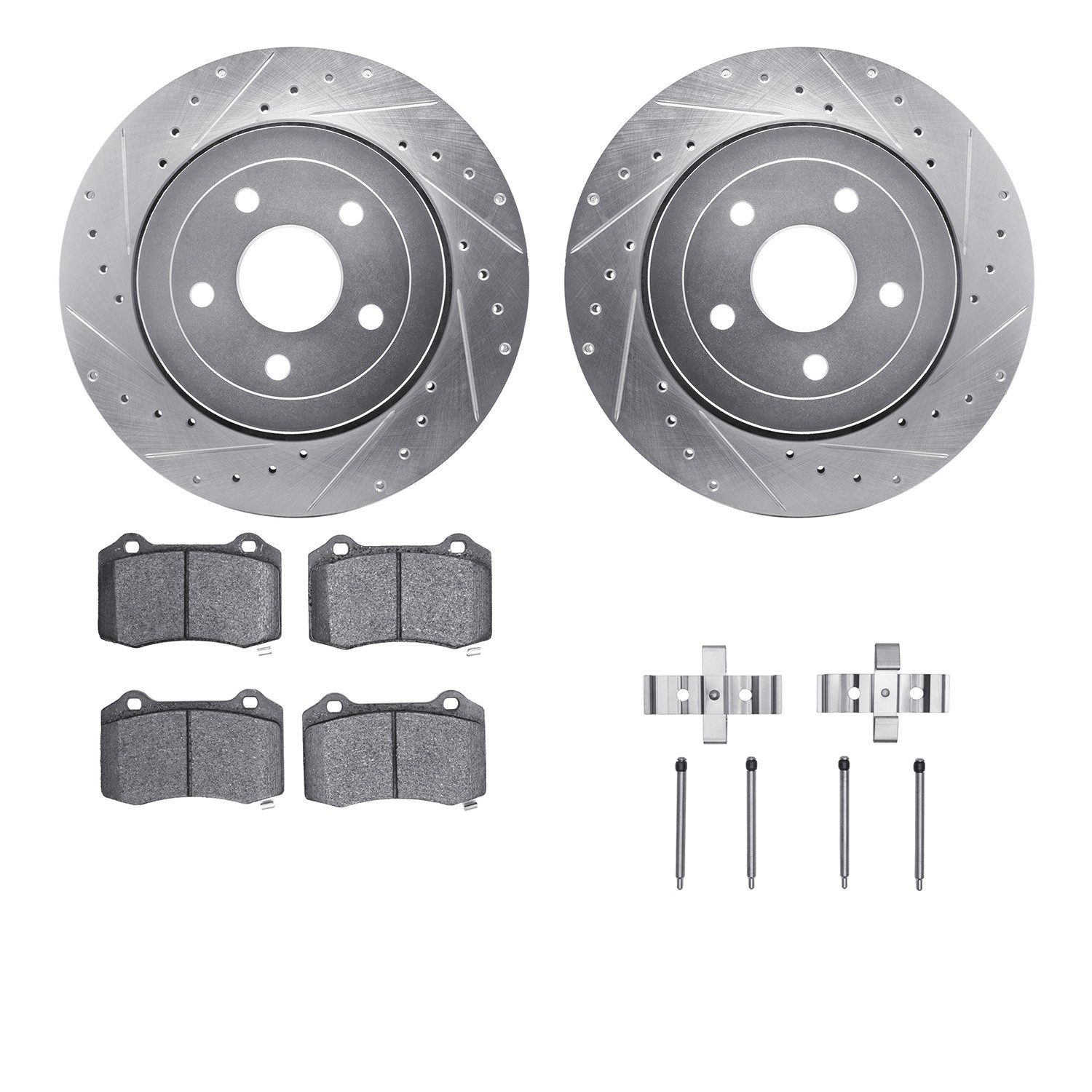 - DFC Brake Rotor - Drilled & Slotted - Silver- HD Brake Pad - Hardware