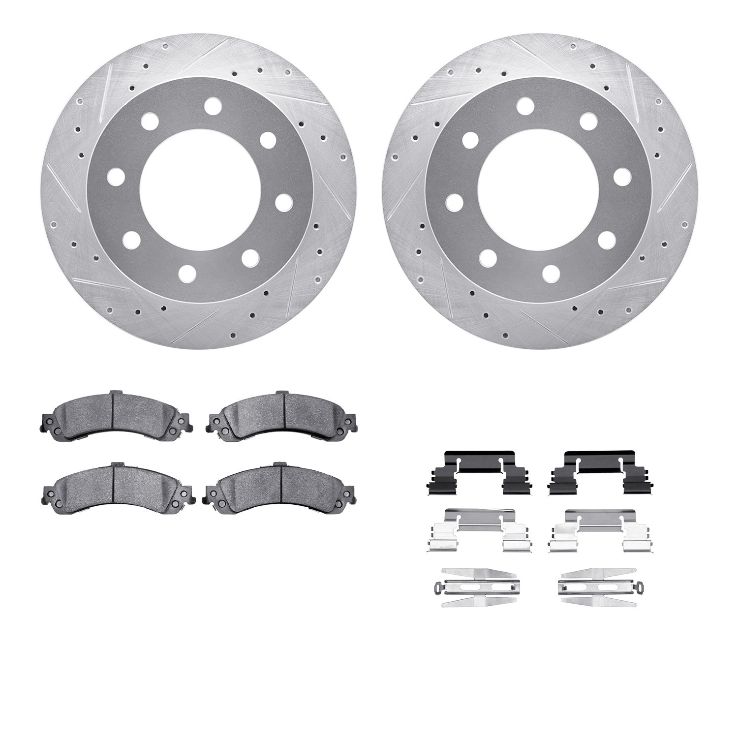 - DFC Brake Rotor - Drilled & Slotted - Silver- HD Brake Pad - Hardware