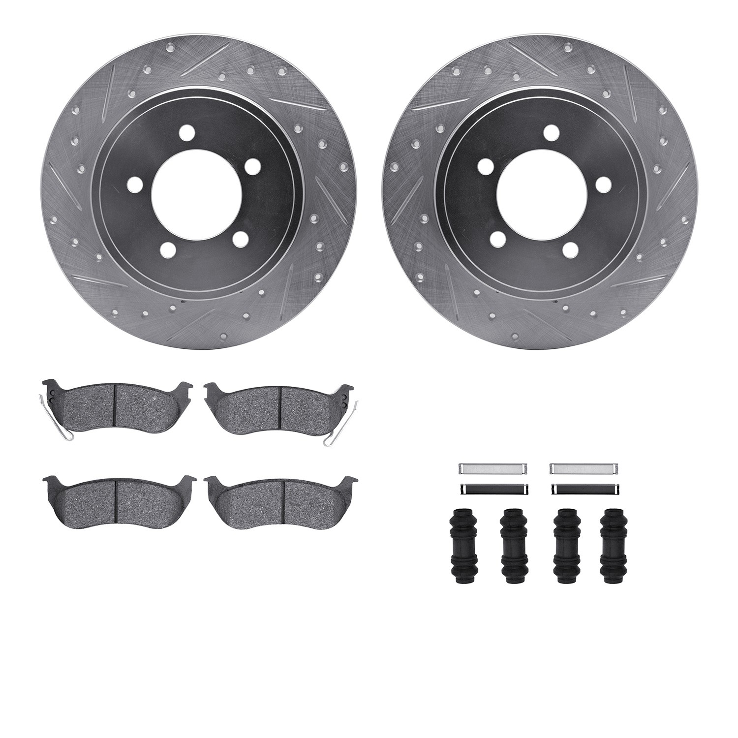 - DFC Brake Rotor - Drilled & Slotted - Silver- HD Brake Pad - Hardware
