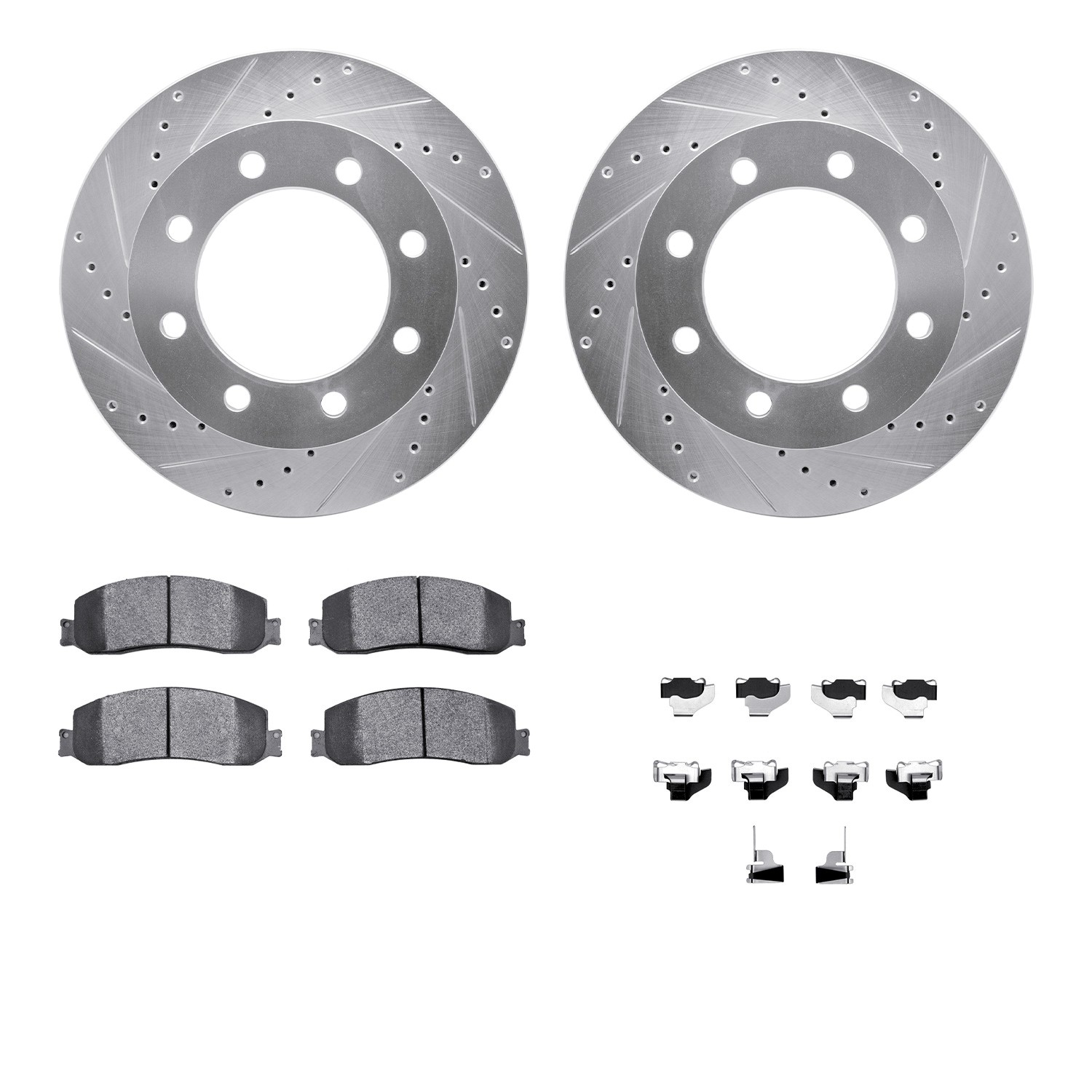- DFC Brake Rotor - Drilled & Slotted - Silver- HD Brake Pad - Hardware