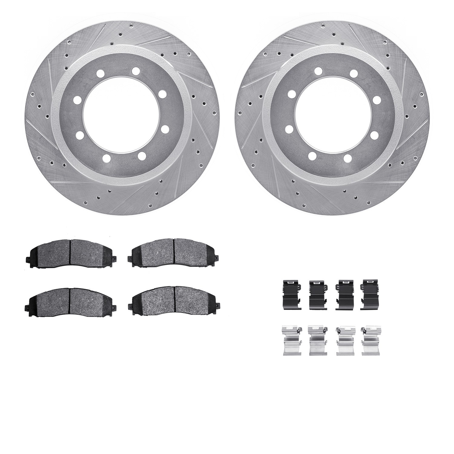 - DFC Brake Rotor - Drilled & Slotted - Silver- HD Brake Pad - Hardware