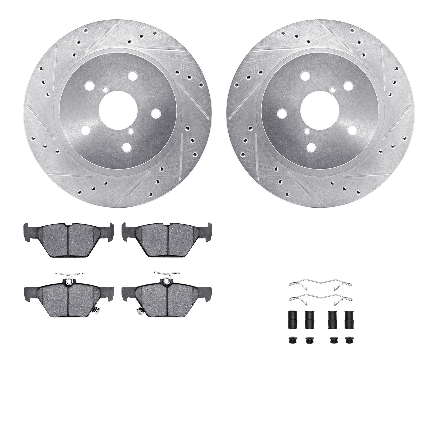 - DFC Rotors-Drilled & Slotted-Silver w/ 5000 Advanced Brake Pads Incl Hdw