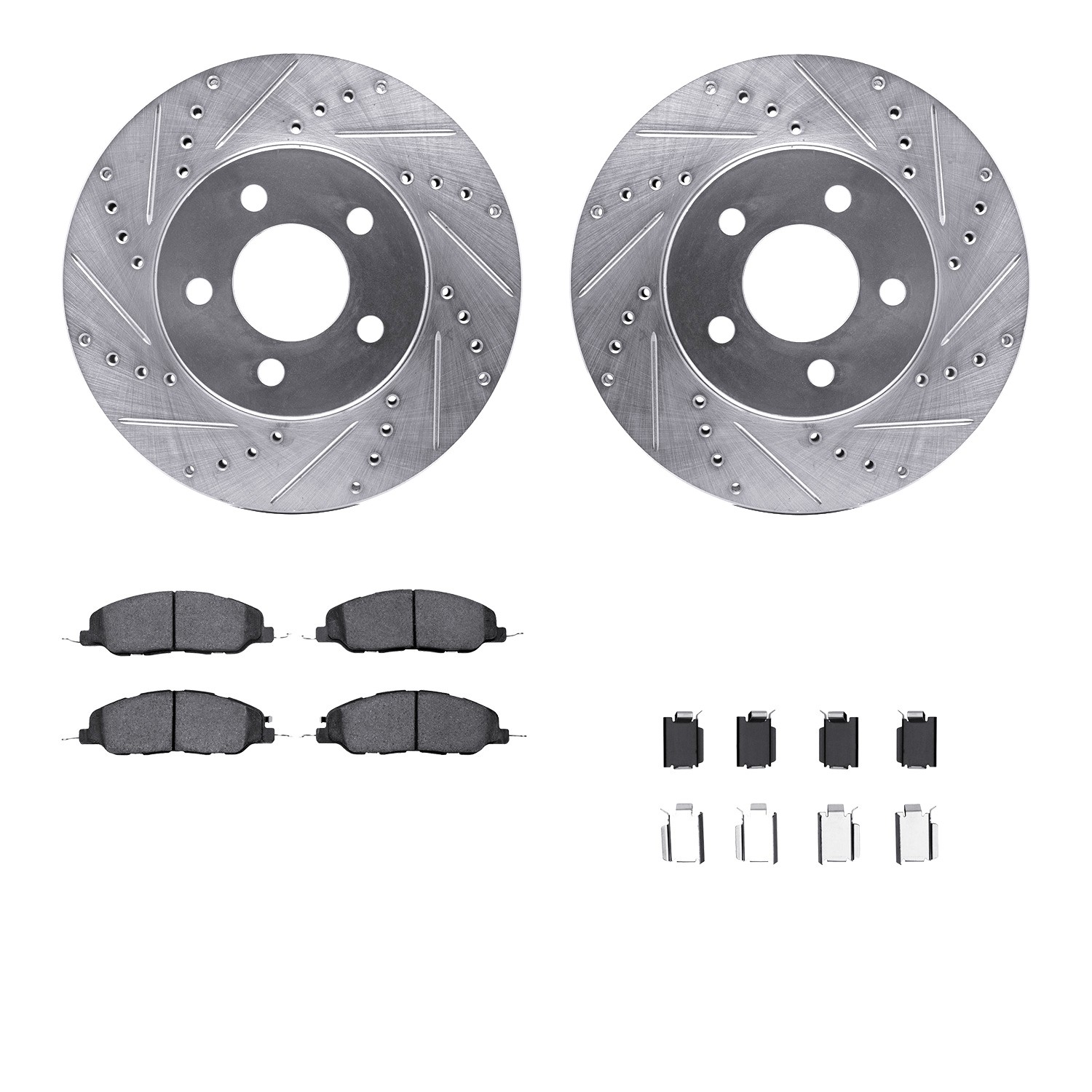 - DFC Rotors-Drilled & Slotted-Silver w/ 5000 Advanced Brake Pads Incl Hdw