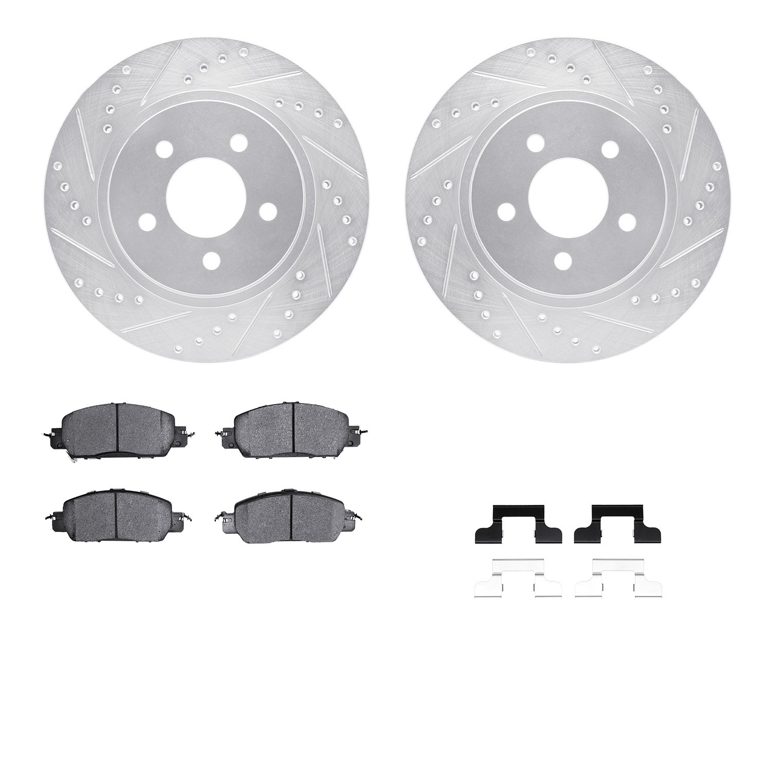 - DFC Rotors-Drilled & Slotted-Silver w/ 5000 Advanced Brake Pads Incl Hdw