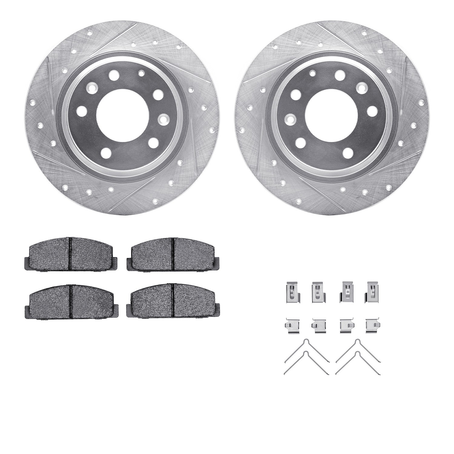 - DFC Rotors-Drilled & Slotted-Silver w/ 5000 Advanced Brake Pads Incl Hdw