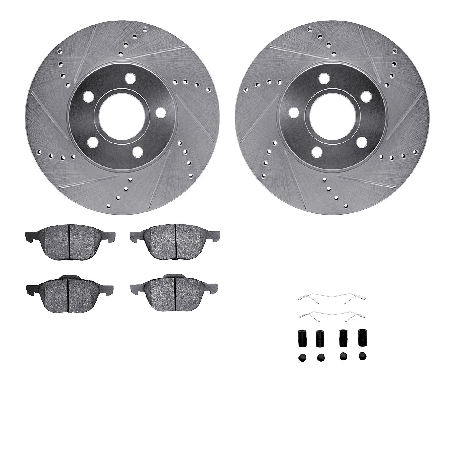 - DFC Rotors-Drilled & Slotted-Silver w/ 5000 Advanced Brake Pads Incl Hdw