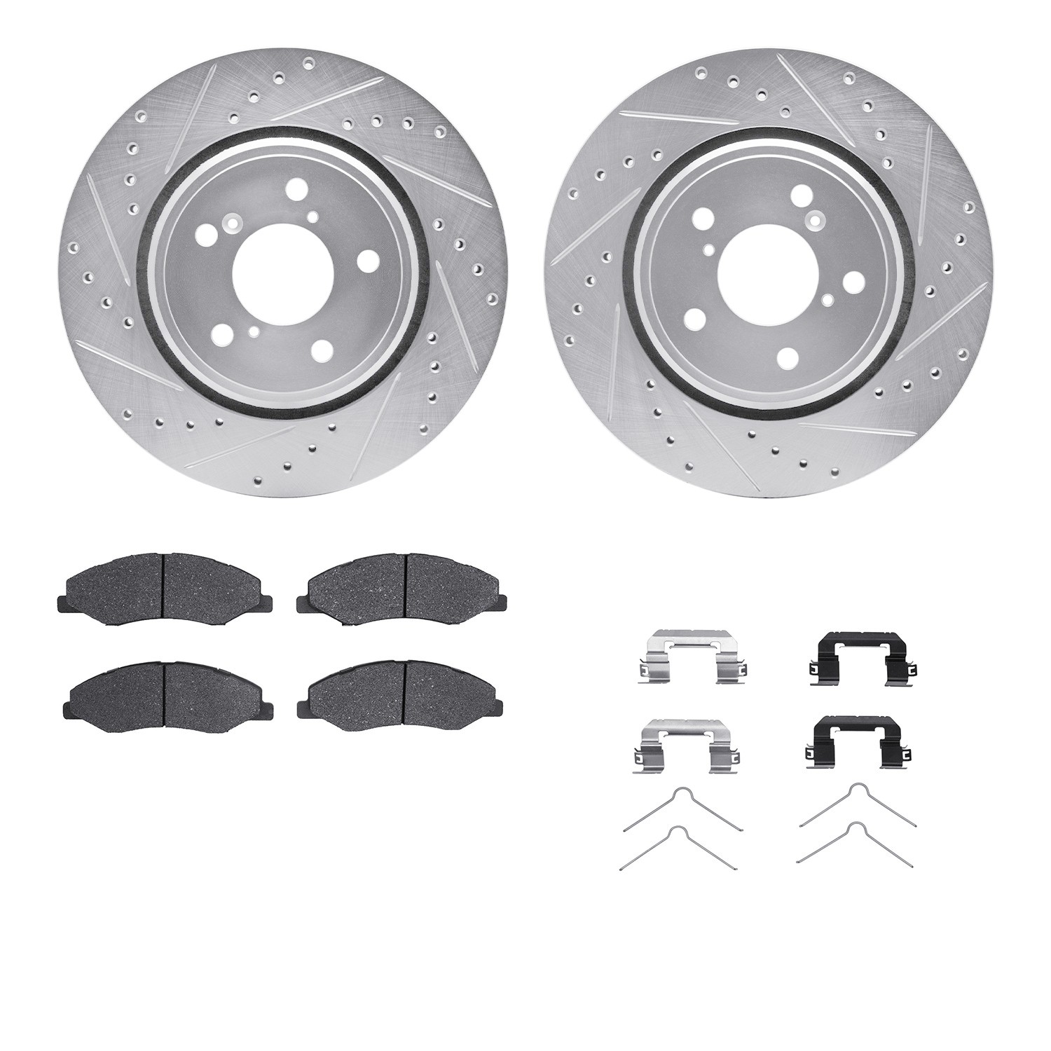- DFC Rotors-Drilled & Slotted-Silver w/ 5000 Advanced Brake Pads Incl Hdw