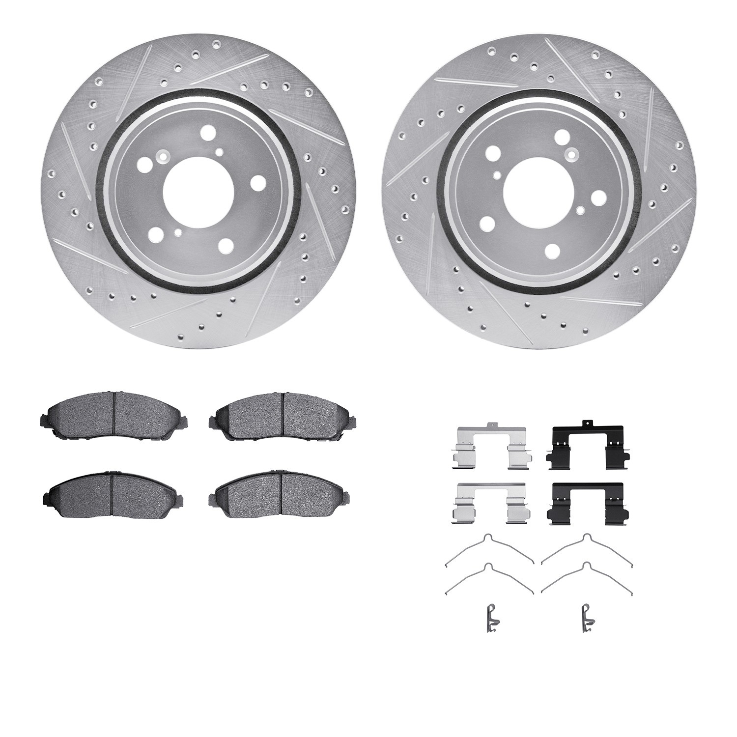 - DFC Brake Rotor - Dimpled & Slotted - Silver w/5000 Brake Pads & HW Kit