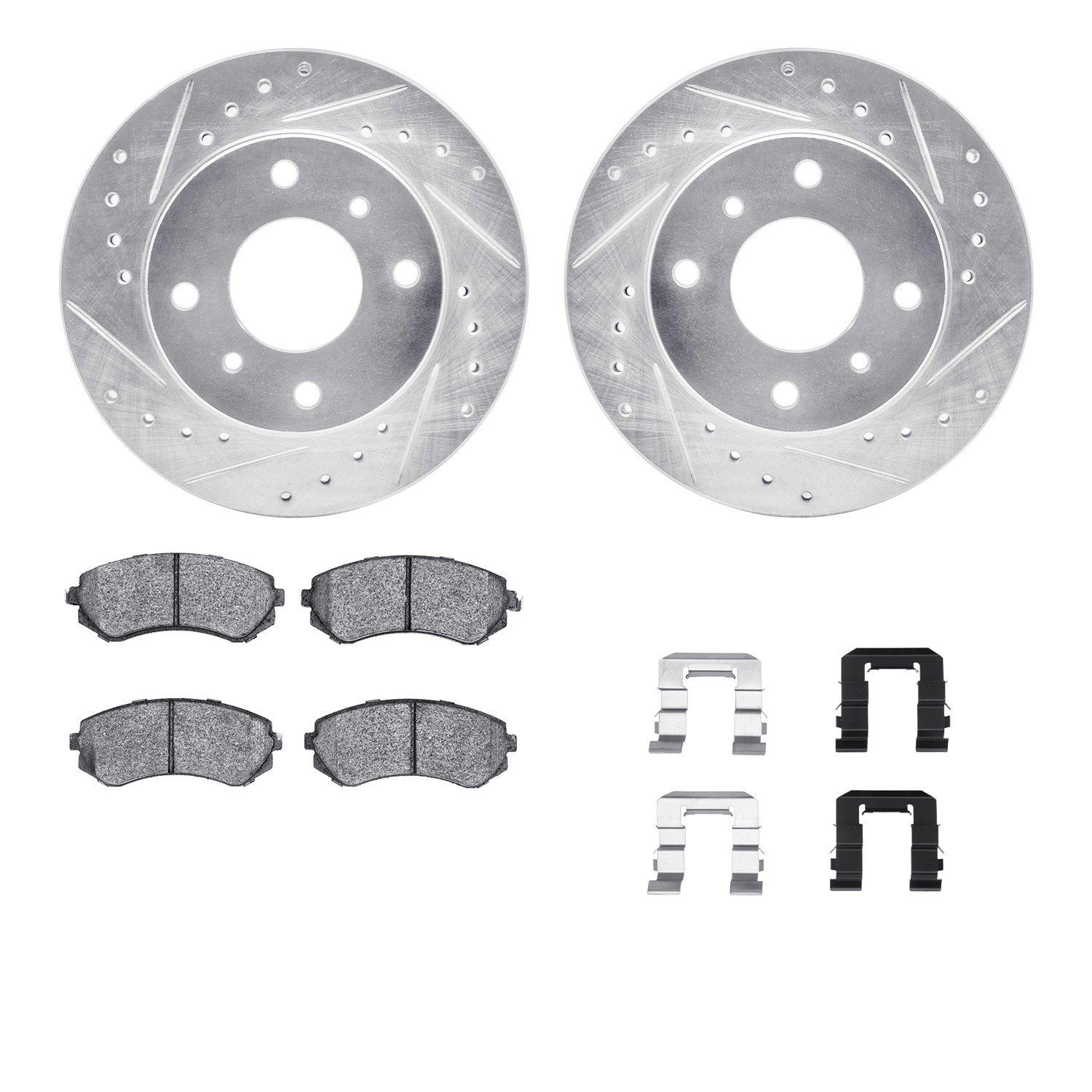 - DFC Rotors-Drilled & Slotted-Silver w/ 5000 Advanced Brake Pads Incl Hdw