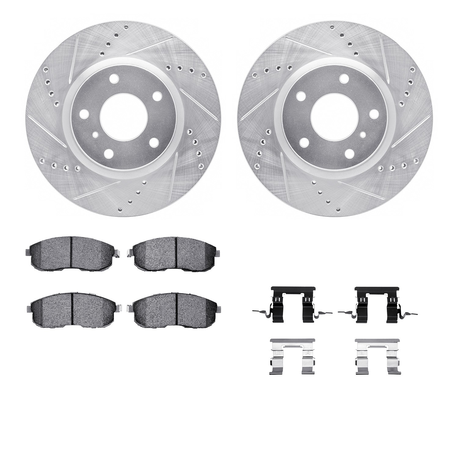 - DFC Rotors-Drilled & Slotted-Silver w/ 5000 Advanced Brake Pads Incl Hdw
