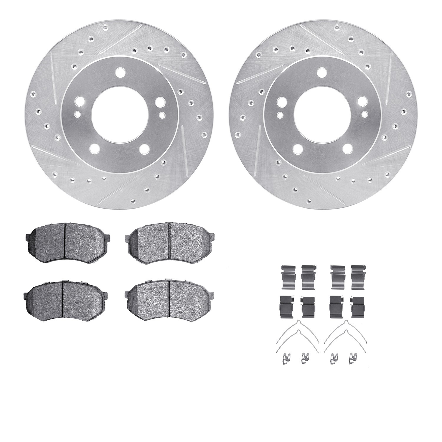 - DFC Rotors-Drilled & Slotted-Silver w/ 5000 Advanced Brake Pads Incl Hdw