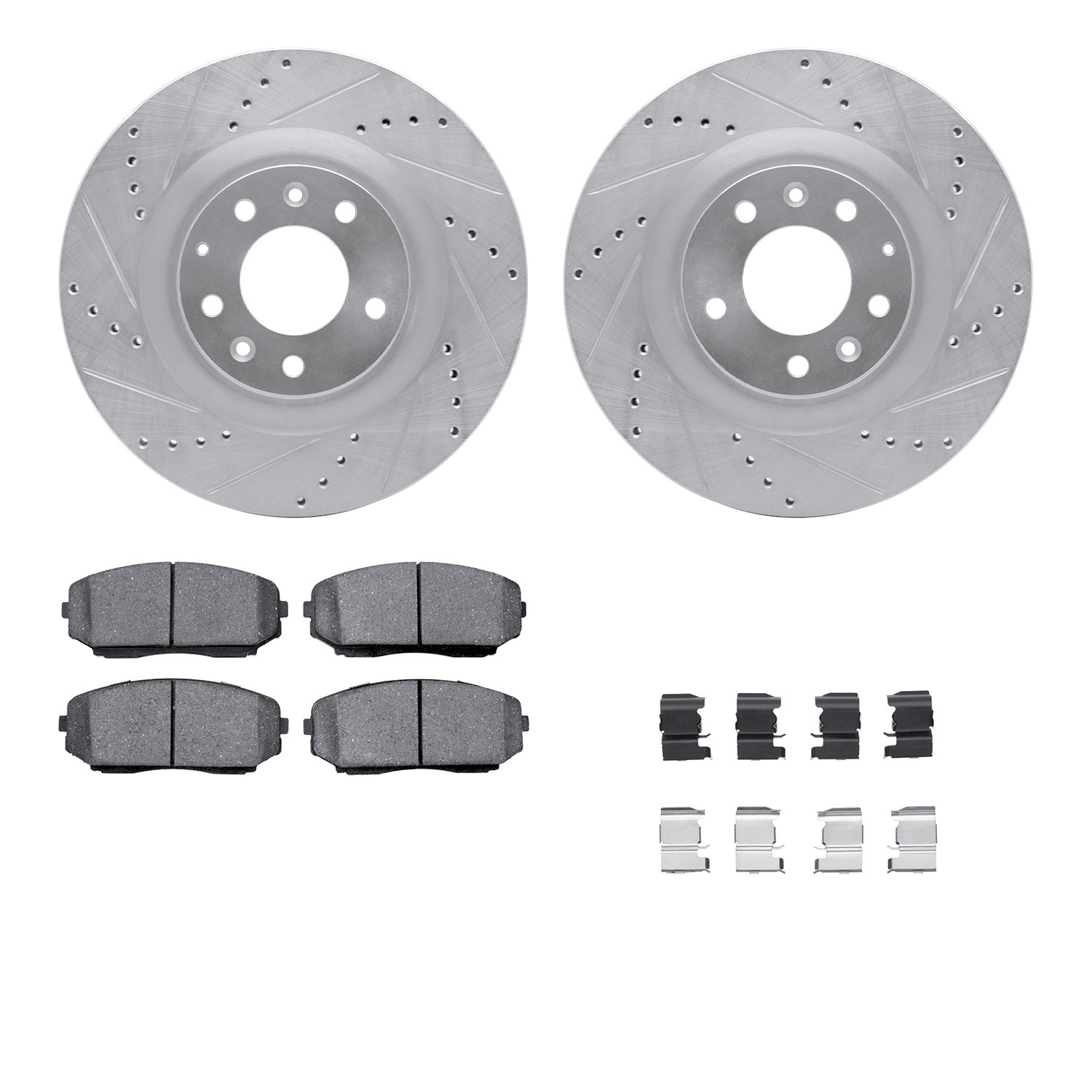 - DFC Brake Rotor - Dimpled & Slotted - Silver w/5000 Brake Pads & HW Kit