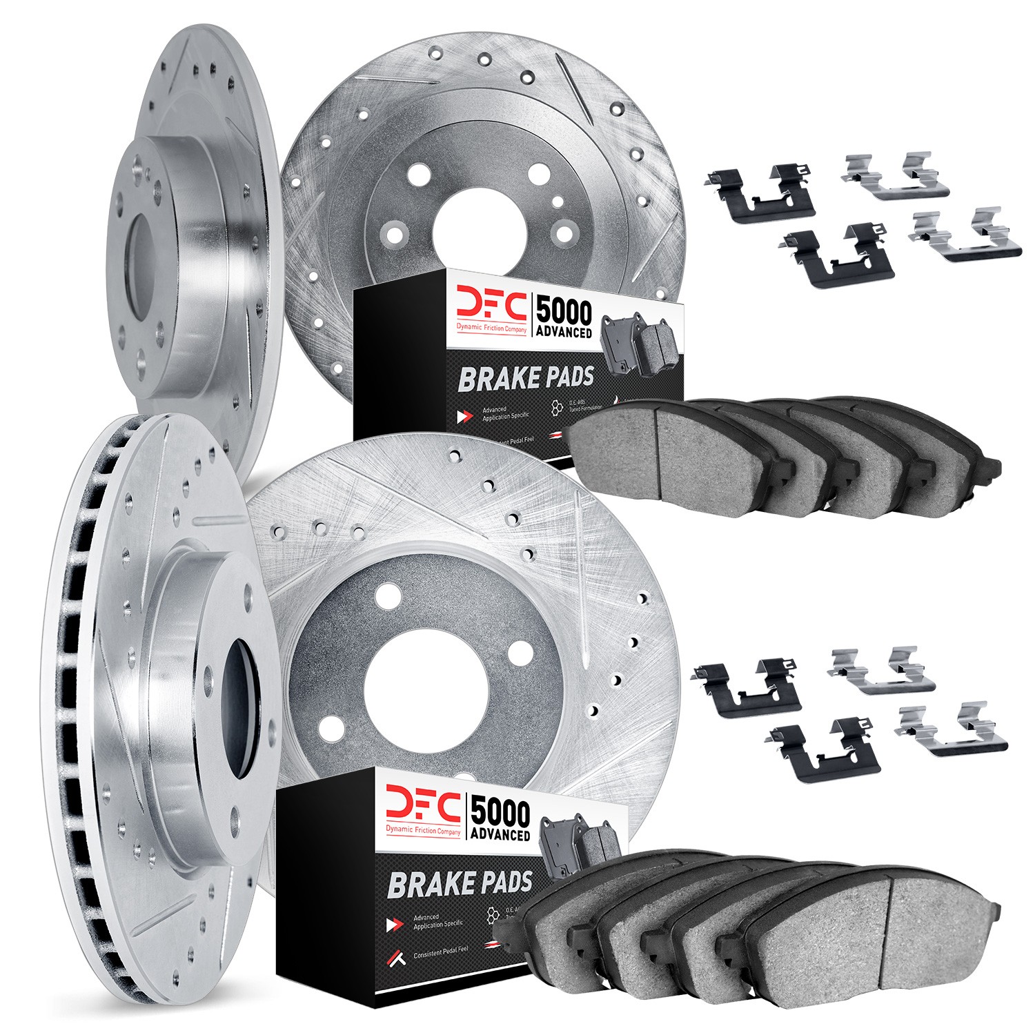- DFC Rotors-Drilled & Slotted-Silver w/ 5000 Advanced Brake Pads Incl Hdw