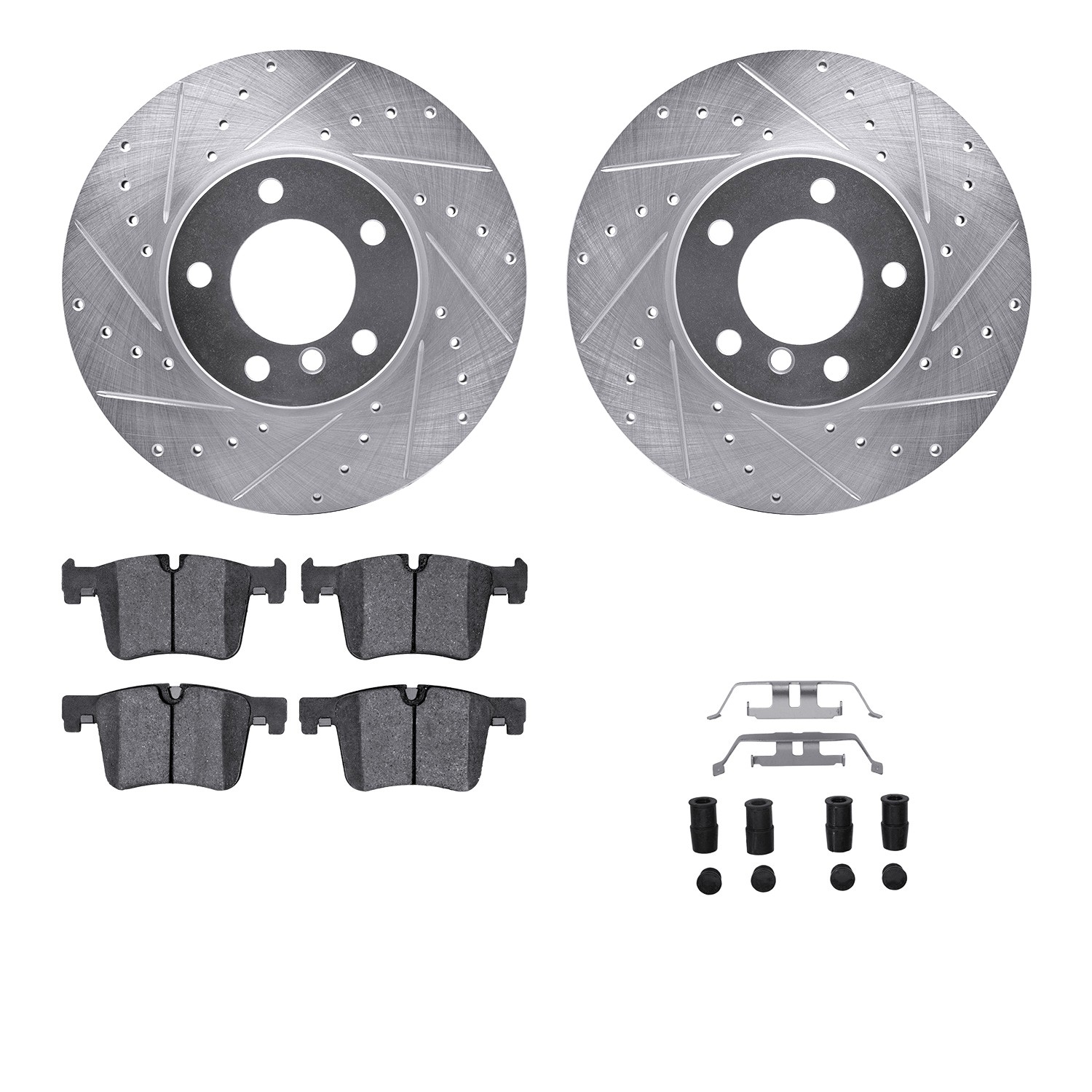 - DFC Rotors-Drilled & Slotted-Silver w/ EURO 5000 Ceramic Brake Pads Incl Hdw