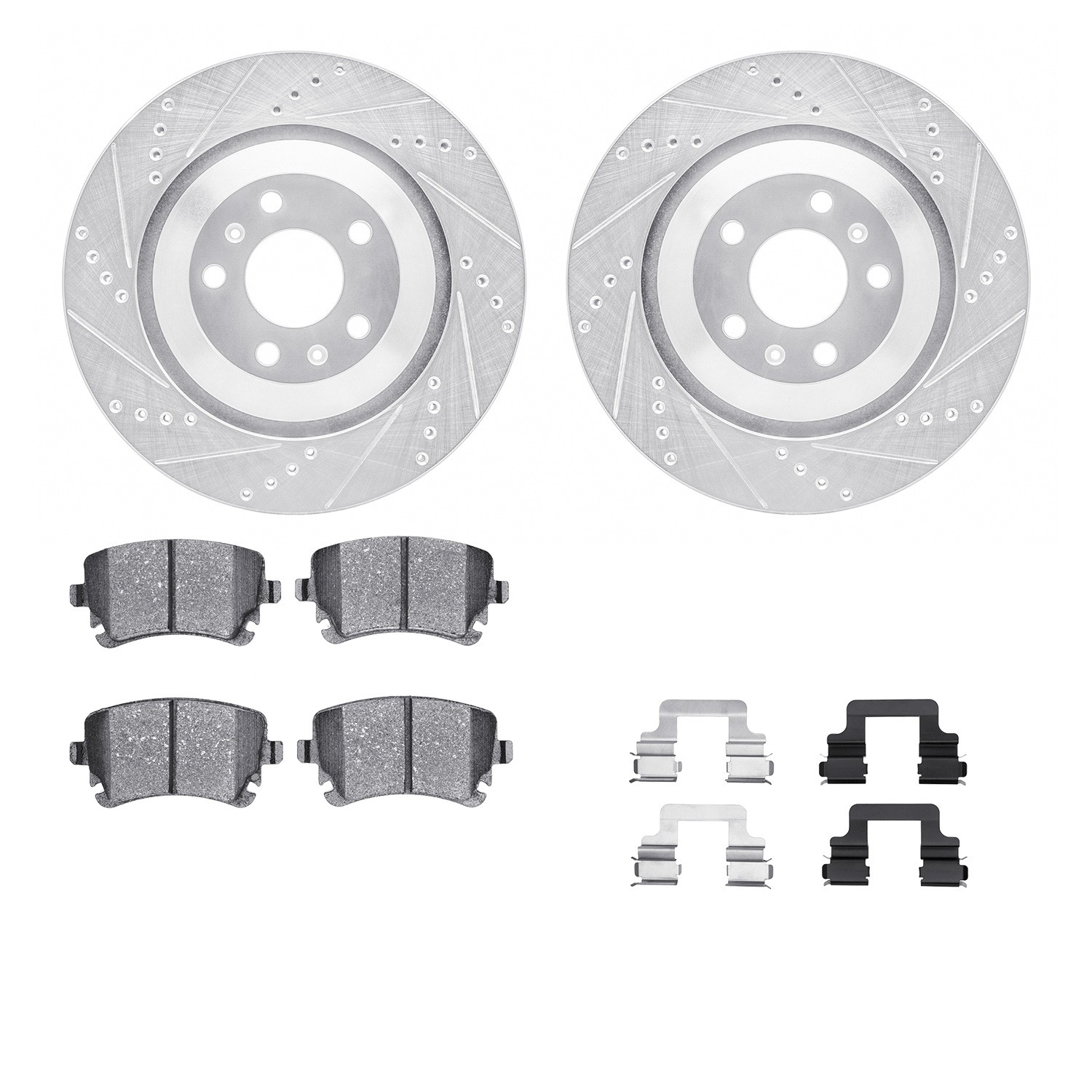 - DFC Rotors-Drilled & Slotted-Silver w/ EURO 5000 Ceramic Brake Pads Incl Hdw
