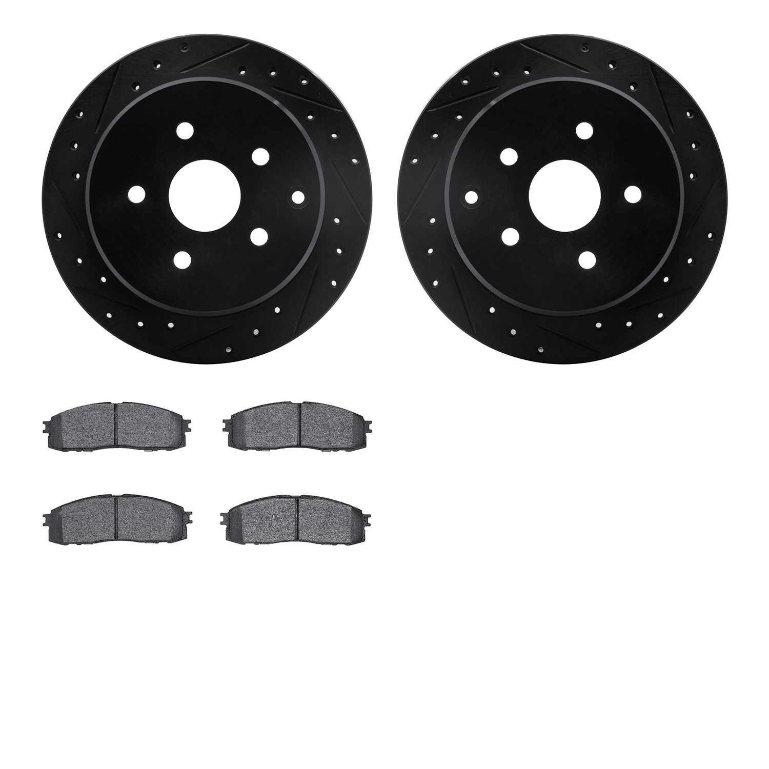 - DFC Rotors-Drilled and Slotted-Black with 5000 Advanced Brake Pads