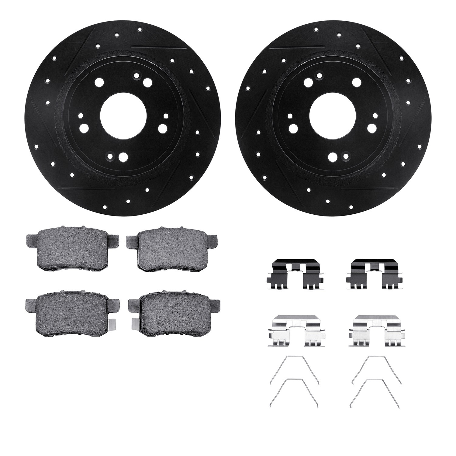 • DFC Rotors-Drilled & Slotted-Black w/ 5000 Advanced Brake Pads Incl Hdw