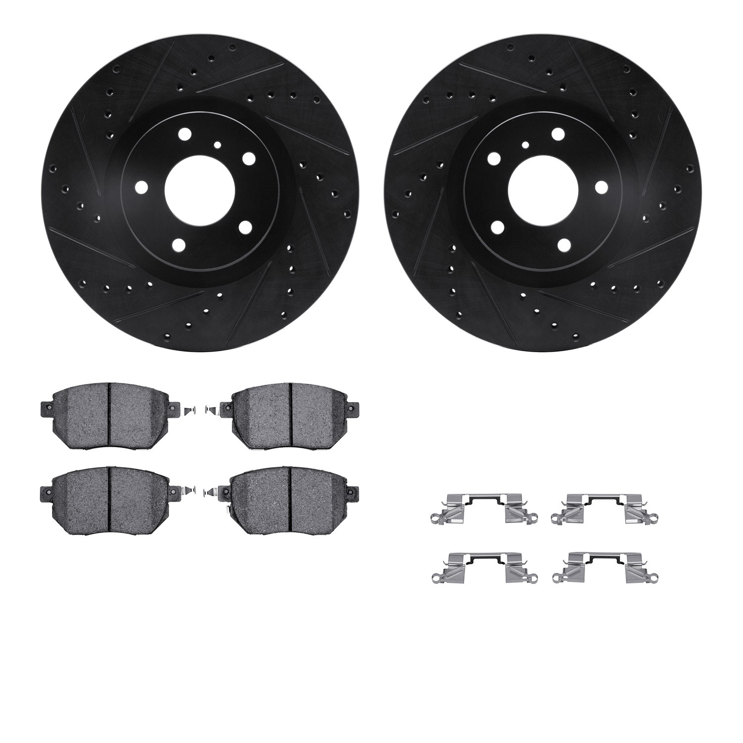 - DFC Brake Rotor - Dimpled & Slotted - Black w/5000 Brake Pads & HW Kit