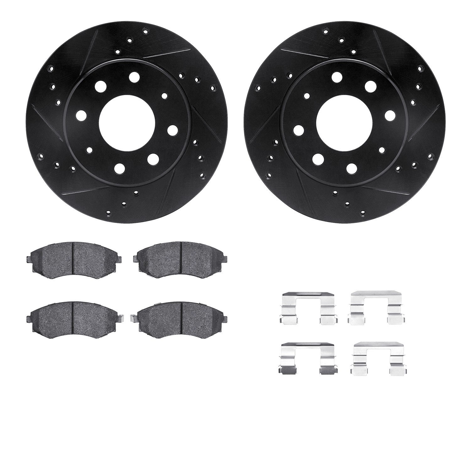 - DFC Rotors-Drilled & Slotted-Black w/ 5000 Advanced Brake Pads Incl Hdw