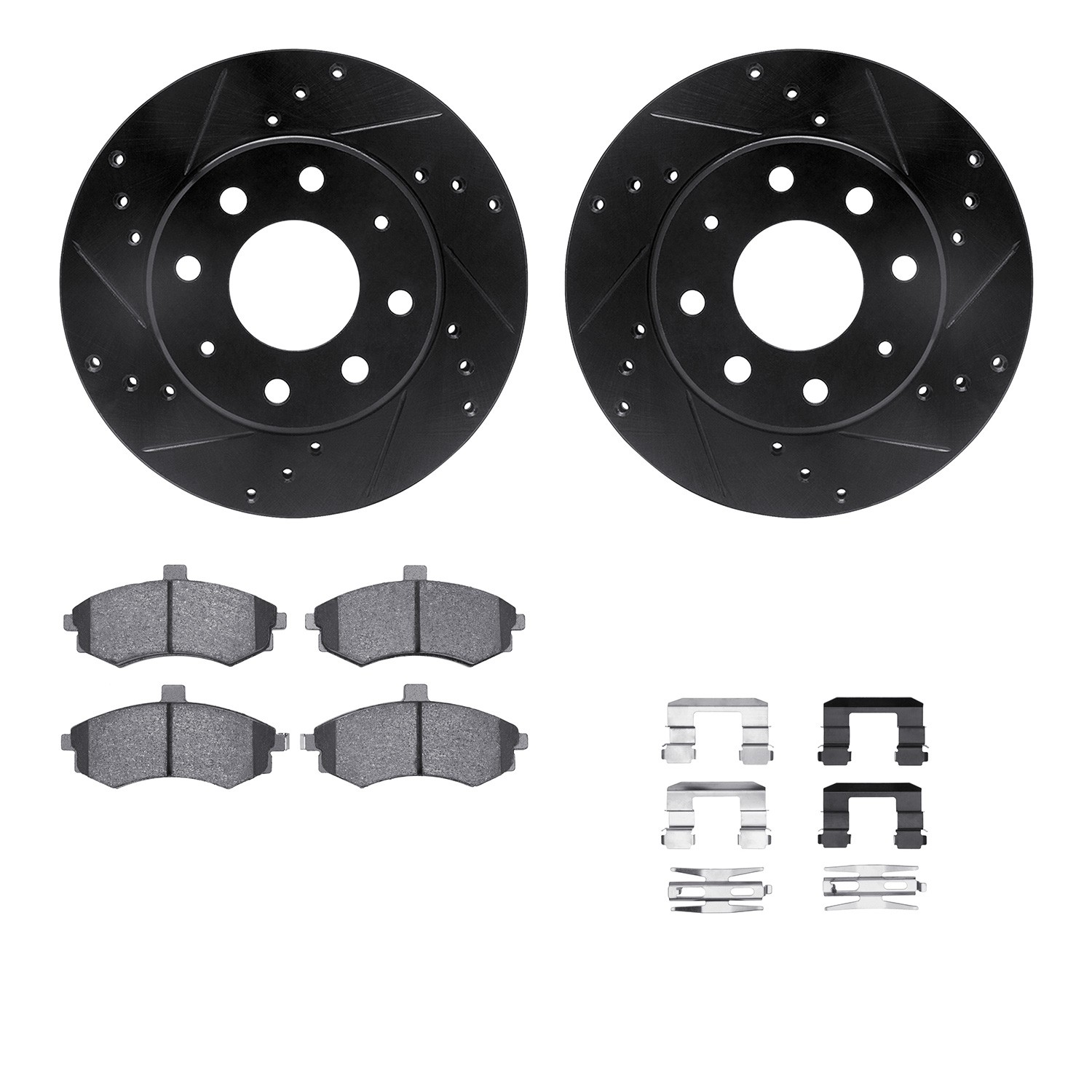 - DFC Rotors-Drilled & Slotted-Black w/ 5000 Advanced Brake Pads Incl Hdw