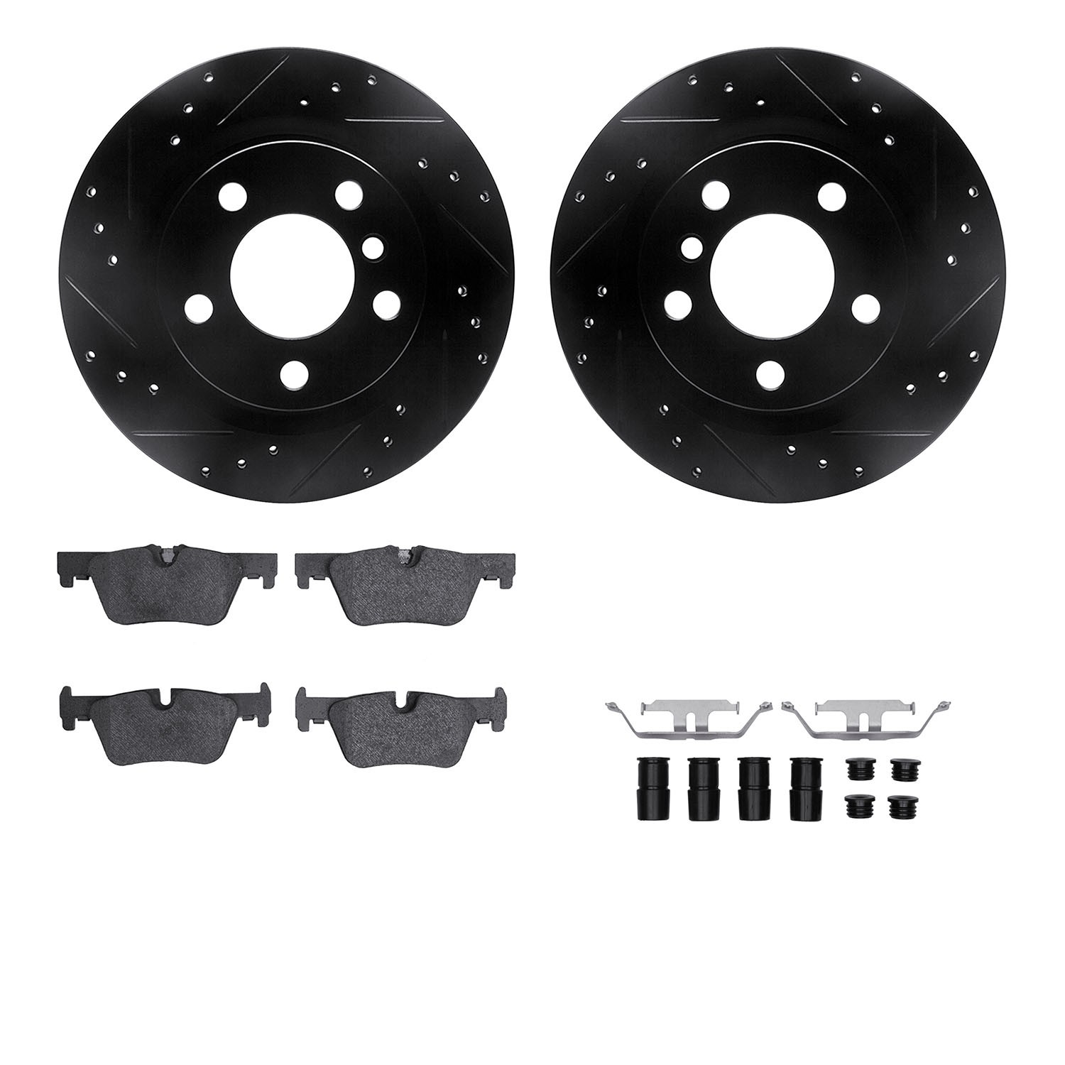 - DFC Rotors-Drilled & Slotted-Black w/ EURO 5000 Ceramic Brake Pads Incl Hdw
