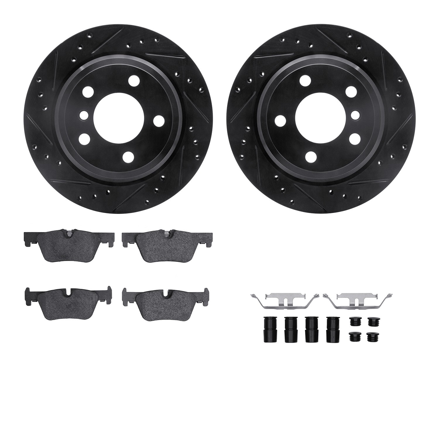 - DFC Rotors-Drilled & Slotted-Black w/ EURO 5000 Ceramic Brake Pads Incl Hdw
