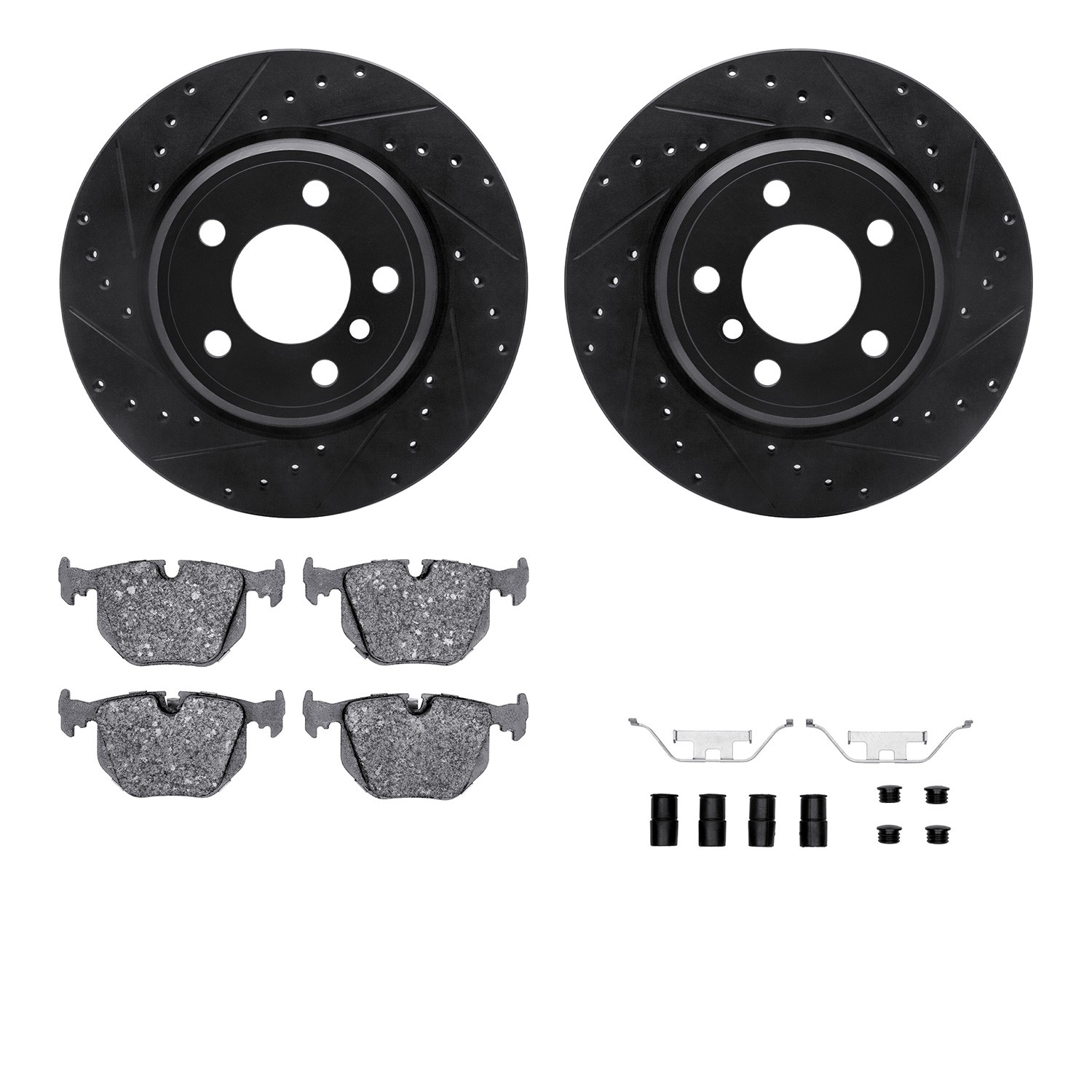 - DFC Rotors-Drilled & Slotted-Black w/ EURO 5000 Ceramic Brake Pads Incl Hdw