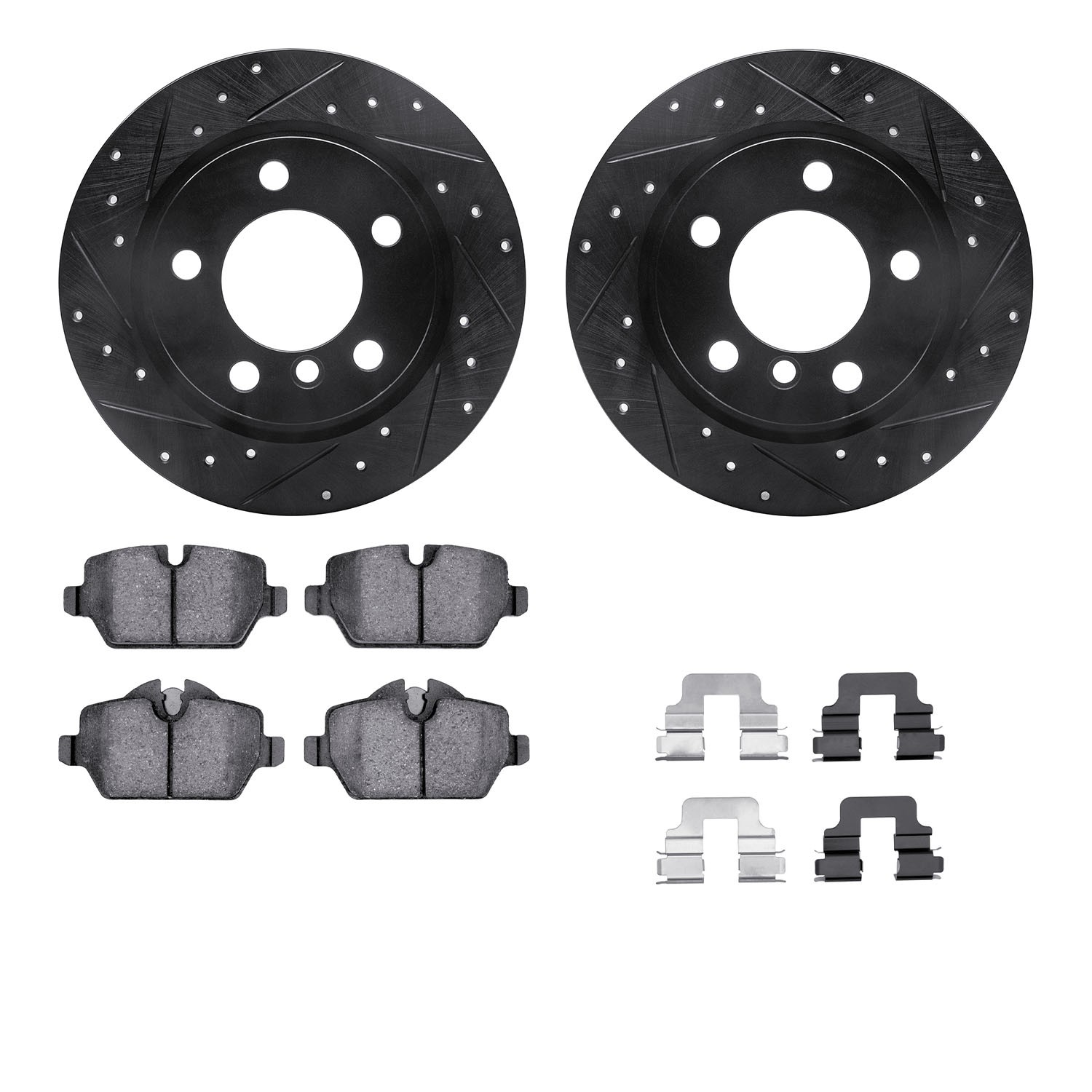 - DFC Rotors-Drilled & Slotted-Black w/ EURO 5000 Ceramic Brake Pads Incl Hdw