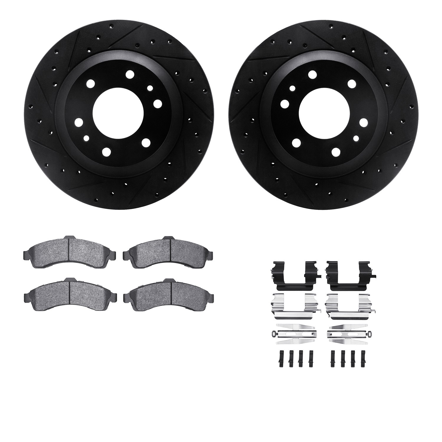 - DFC Rotors-Drilled & Slotted-Black w/ EURO 5000 Ceramic Brake Pads Incl Hdw
