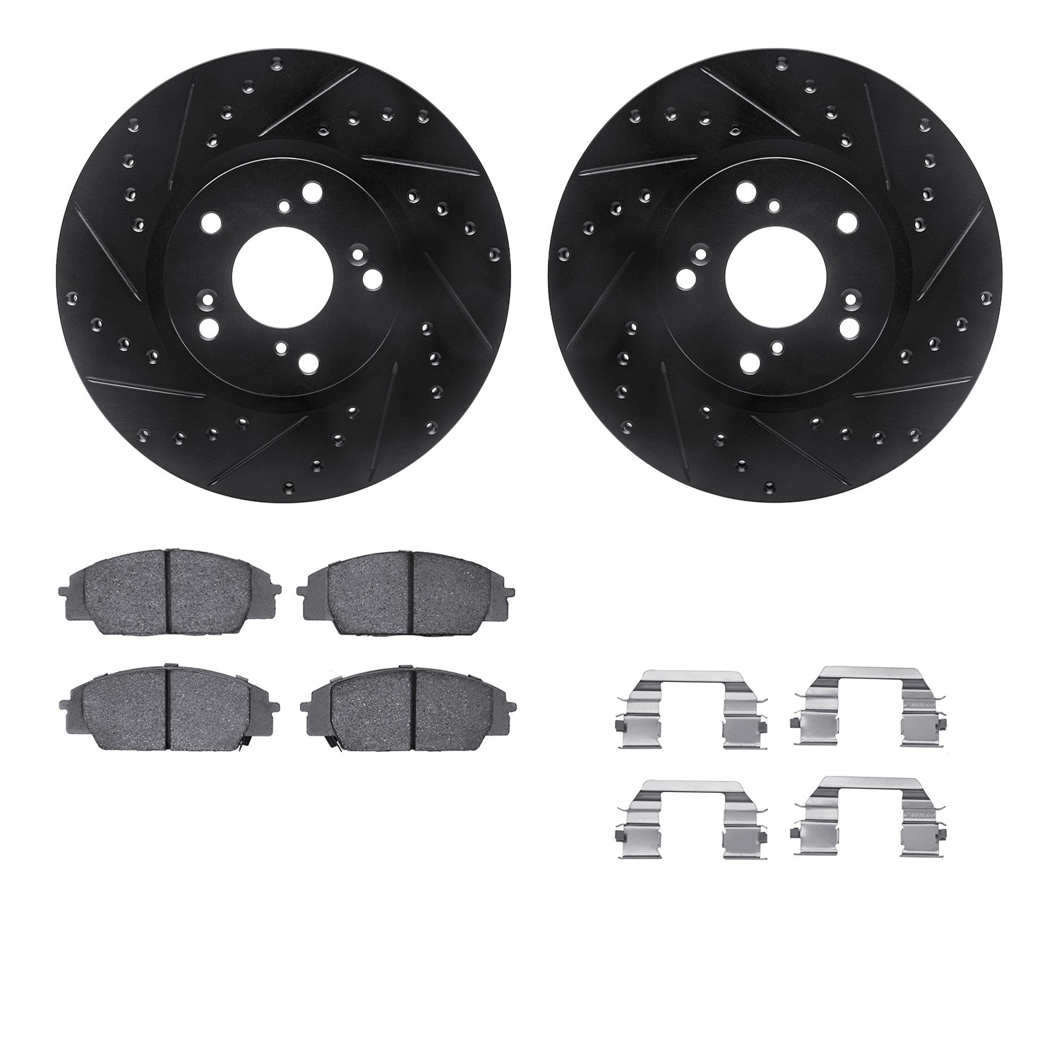 - DFC Rotors-Drilled & Slotted-Black w/ EURO 5000 Ceramic Brake Pads Incl Hdw