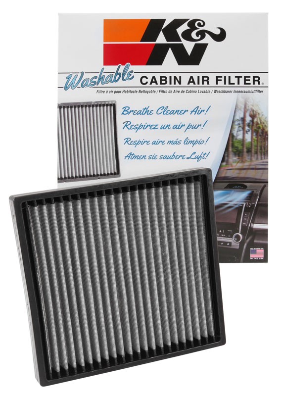 - K&N washable cabin air filters are engineered to fit directly into your factory air box, offering excellent protection from environmental contaminants and odor-causing particles. The thermally bonded high-flow synthetic material acts as a physical barrier, helping trap dust, pollen, mold, bacteria, fungi, and other pollutants, and is specially pleated to increase the contaminant-capturing surface area. Each filter is engineered to install easily into your factory cabin air box, and is designed to be easily washed and reinstalled whenever necessary. Buy with confidence under the K&N 10-Year/Million Mile Limited Warranty.